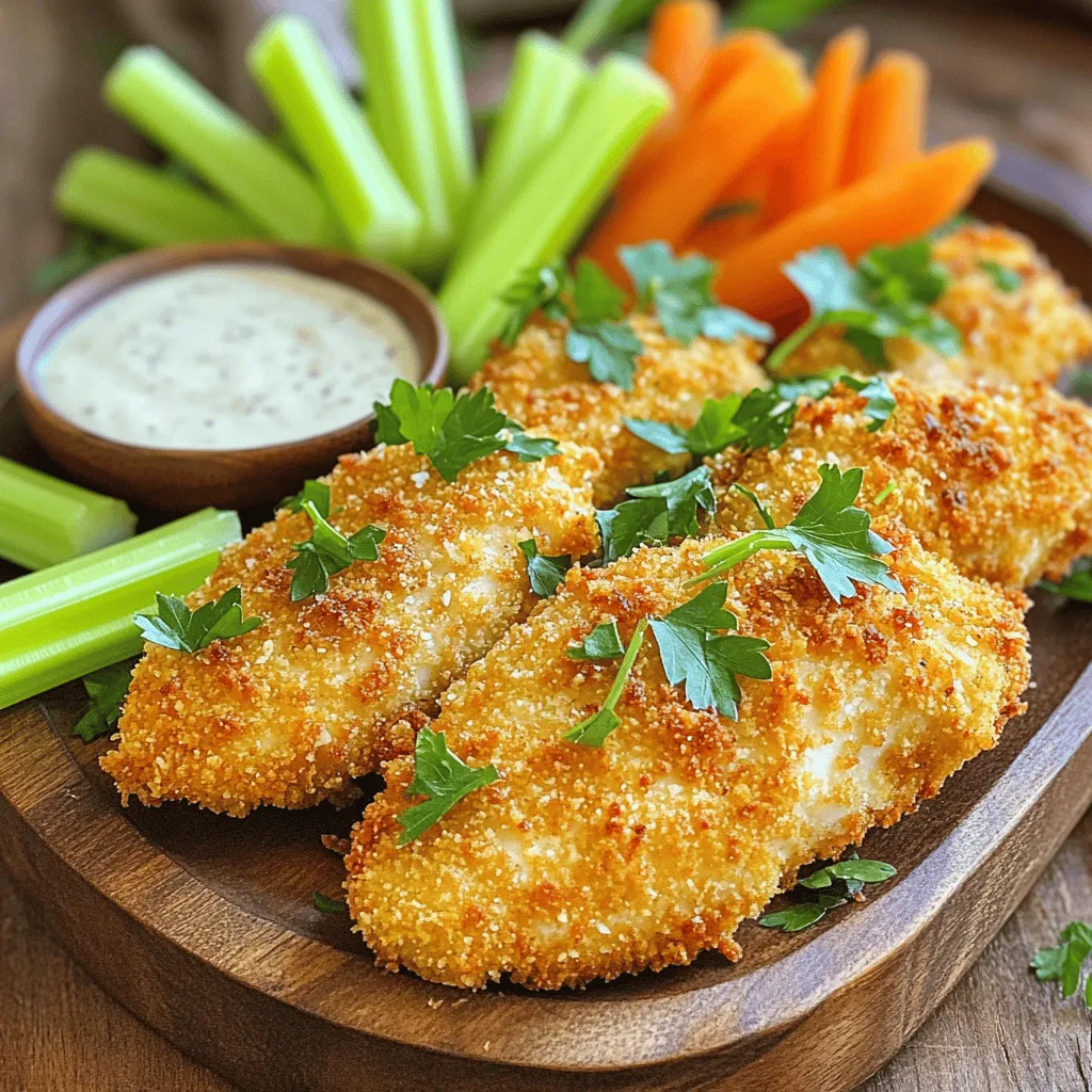 For a low-carb version, you can swap breadcrumbs with almond flour or crushed pork rinds. This keeps the crunch without the carbs. To make it gluten-free, use gluten-free breadcrumbs. These alternatives taste great and let you enjoy the tenders without worry. You can also bake the tenders instead of using the air fryer, keeping them light and crispy.