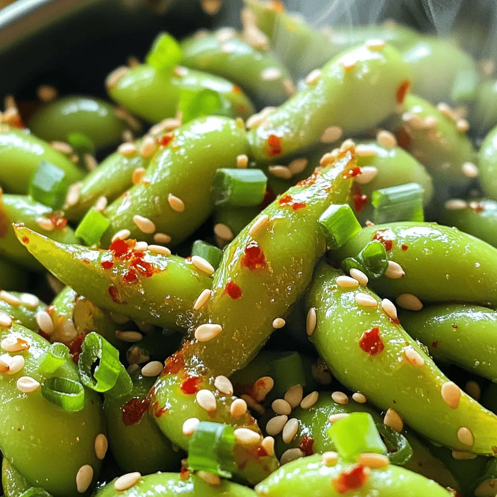 Spicy garlic edamame pairs well with many dishes. Try serving it with sushi or rice. It makes a great side for grilled meats too. For a fun twist, add it to a salad for extra crunch. You can even serve it as a snack with drinks. The flavors work well with beer or sake. Enjoy experimenting with different pairings!