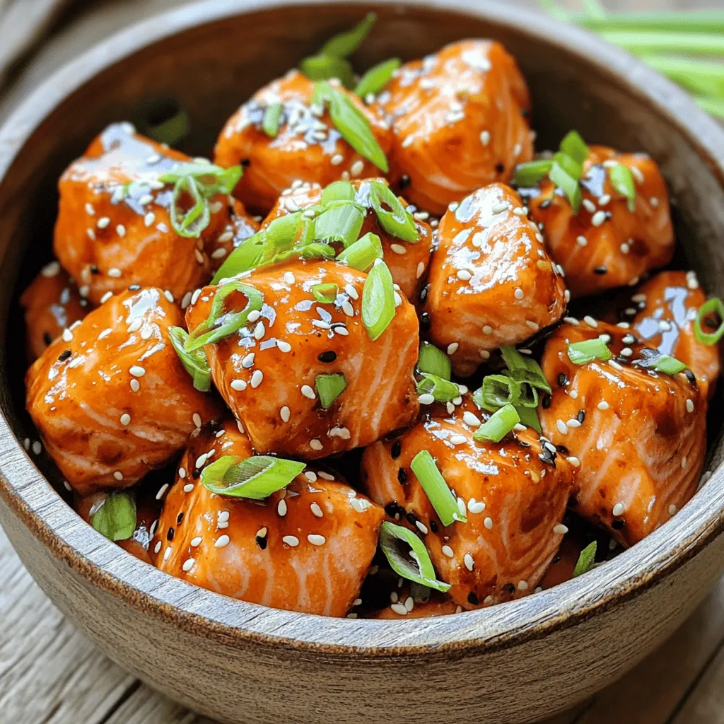 For creative serving ideas, try using lettuce wraps. Place a salmon bite in a lettuce leaf, add some veggies, and drizzle with extra sauce. It makes for a fun and tasty meal!
