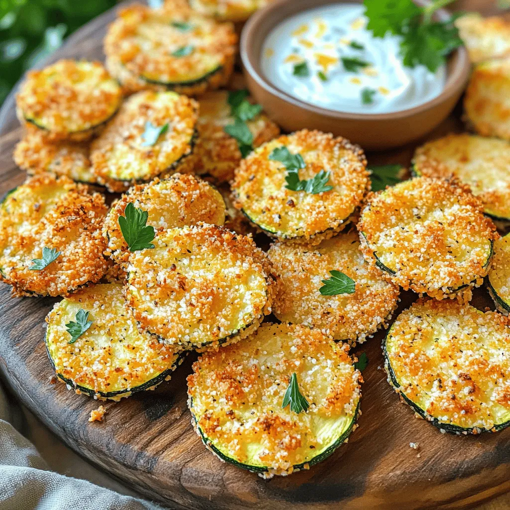 - Presentation Tips: Serve the crispy zucchini coins on a platter. Garnish with fresh herbs like parsley or basil, and pair them with a zesty dip such as a yogurt-based ranch or tzatziki for a delightful finish!