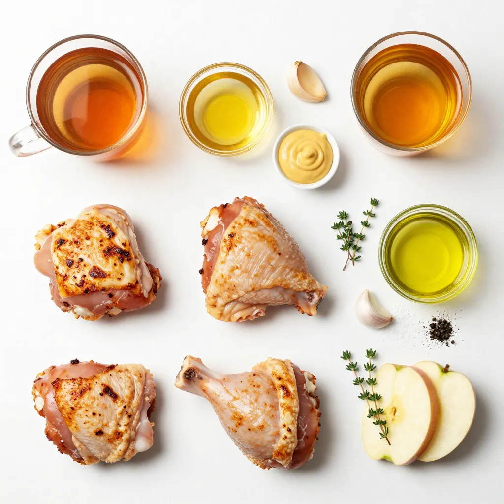 Glaze the Chicken: Pour the apple cider mixture over the seared chicken thighs in the skillet. Reduce the heat to medium-low, cover the skillet, and let it simmer for about 15-20 minutes, or until the chicken is cooked through (internal temperature should reach 165°F/75°C).