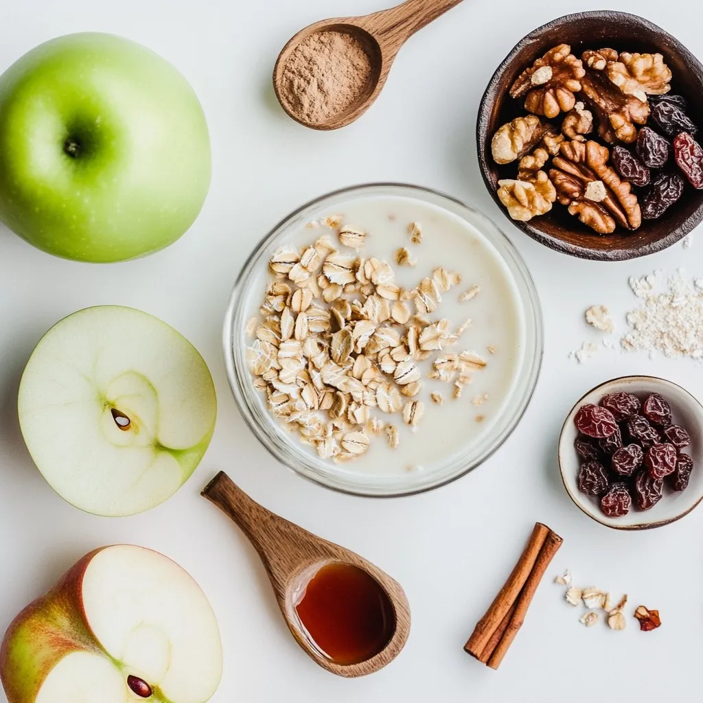 To make Apple Cinnamon Baked Oatmeal, you need some key ingredients. Here’s what you’ll need: - 2 cups rolled oats - 1 ½ cups milk (dairy or plant-based) - 2 medium apples, peeled, cored, and diced - 1/3 cup maple syrup or honey - 1 teaspoon vanilla extract - 1 teaspoon ground cinnamon - 1/2 teaspoon baking powder - 1/4 teaspoon salt These ingredients create a warm and tasty dish. The oats give texture, while the apples add sweetness. You can really customize this recipe with some fun add-ins. Here are some options: - 1/2 cup walnuts or pecans, chopped - 1/4 cup raisins or dried cranberries - Fresh apple slices for topping - A sprinkle of cinnamon for extra flavor These extras can boost taste and crunch. They also make your baked oatmeal more fun! If you have special dietary needs, you can still enjoy this dish. Here are some easy swaps: - For a dairy-free option, use almond milk or oat milk. - If you need gluten-free oats, make sure to buy certified gluten-free rolled oats. - Swap maple syrup with agave syrup for a vegan option. These substitutions keep the dish tasty while fitting your diet. Enjoy creating your perfect Apple Cinnamon Baked Oatmeal! {{ingredient_image_1}} Start by preheating your oven to 350°F (175°C). While the oven warms up, take an 8x8 inch baking dish. Lightly grease it with oil or butter. This helps the oatmeal come out easily later. In a large mixing bowl, combine 2 cups of rolled oats, 1/2 teaspoon of baking powder, 1 teaspoon of ground cinnamon, and 1/4 teaspoon of salt. Stir these ingredients well. Make sure everything mixes evenly. This helps the flavors blend as you cook. In another bowl, pour in 1 ½ cups of milk. You can use dairy or plant-based milk. Then add 1/3 cup of maple syrup or honey. Don’t forget to add 1 teaspoon of vanilla extract. Mix these until they are well combined. This mixture adds sweetness and depth. Now, take 2 medium apples. Peel, core, and dice them into small pieces. Add these apples to the dry mix. Then, pour in the wet mixture. Stir gently, ensuring the oats coat well and the apples spread throughout. If you like, fold in 1/2 cup of chopped walnuts or pecans and 1/4 cup of raisins or dried cranberries for extra flavor. Pour the entire mixture into the prepared baking dish. Spread it out evenly with a spatula. Place it into the oven and bake for about 30 to 35 minutes. You want the top to turn lightly golden. Once it’s done, take it out and let it cool for a few minutes. This makes slicing easier. Serve warm, and enjoy the cozy flavors! To make your Apple Cinnamon Baked Oatmeal even better, add a pinch of nutmeg. This spice pairs well with cinnamon. You can also toast the nuts before mixing. Toasting brings out their natural oils and deepens their flavor. For a creamier texture, use full-fat milk or a rich plant-based milk. If you want more fruit, add an extra apple or some chopped pears. Fresh fruit will make it sweet and juicy. After baking, let the oatmeal cool completely before storing it. Use an airtight container for the best results. It will stay fresh in the fridge for up to five days. When you're ready to eat, you can reheat it in the microwave. Heat for about 30-60 seconds, or until warm. For a crispy top, pop it in the oven at 350°F for about 10 minutes. To make this recipe gluten-free, use certified gluten-free oats. These oats are safe for those with gluten allergies. For a dairy-free option, choose almond milk or coconut milk. Both will keep the dish creamy and delicious. You can also swap maple syrup for agave nectar if you prefer a different sweetener. Pro Tips Choose the Right Apples: For the best flavor and texture, use a mix of sweet and tart apples, such as Granny Smith and Honeycrisp. Customize Your Sweetness: Adjust the amount of maple syrup or honey based on the sweetness of your apples and personal preference. Make It Ahead: Prepare the oatmeal mixture the night before, cover it, and refrigerate. Just bake it in the morning for a quick breakfast! Add Protein: For a heartier dish, consider adding a scoop of protein powder or a dollop of Greek yogurt when serving. {{image_2}} You can change the fruit in this recipe to suit your taste. Try using ripe bananas for a creamy texture. Blueberries add a sweet burst of flavor. You can also use pears for a different twist. All these fruits blend well with oats and spices. Maple syrup and honey are great, but you can try other sweeteners too. Brown sugar gives a rich flavor. Agave nectar is a nice option for a vegan choice. You can even use mashed bananas for natural sweetness. Just adjust the amount to your liking. Mixing in spices can create exciting flavors. Consider adding nutmeg for warmth. A touch of ginger gives a nice kick. You can also add a splash of almond extract for a nutty taste. Experiment with these combinations to find your favorite blend. To keep your Apple Cinnamon Baked Oatmeal fresh, let it cool first. Then, cover it with plastic wrap or foil. You can also put it in an airtight container. Store it in the fridge for up to five days. Make sure to check for any off smells before eating. If you want to freeze it, cut the baked oatmeal into squares. Wrap each piece in plastic wrap, then place them in a freezer-safe bag. You can freeze the oatmeal for up to three months. Label the bag with the date, so you know when you made it. To reheat, you have a couple of options. For the microwave, place a piece on a plate and cover it. Heat it for about 30 seconds to 1 minute. For the oven, preheat it to 350°F (175°C). Place the oatmeal in an oven-safe dish and cover it with foil. Heat it for about 10-15 minutes until warm. You can add a splash of milk for extra moisture if you like. Yes, you can make it ahead. Bake it, let it cool, and store it in the fridge. This dish tastes great the next day. Just reheat it in the oven or microwave. Absolutely! This recipe is perfect for meal prep. You can make a big batch. Portion it into containers for easy grab-