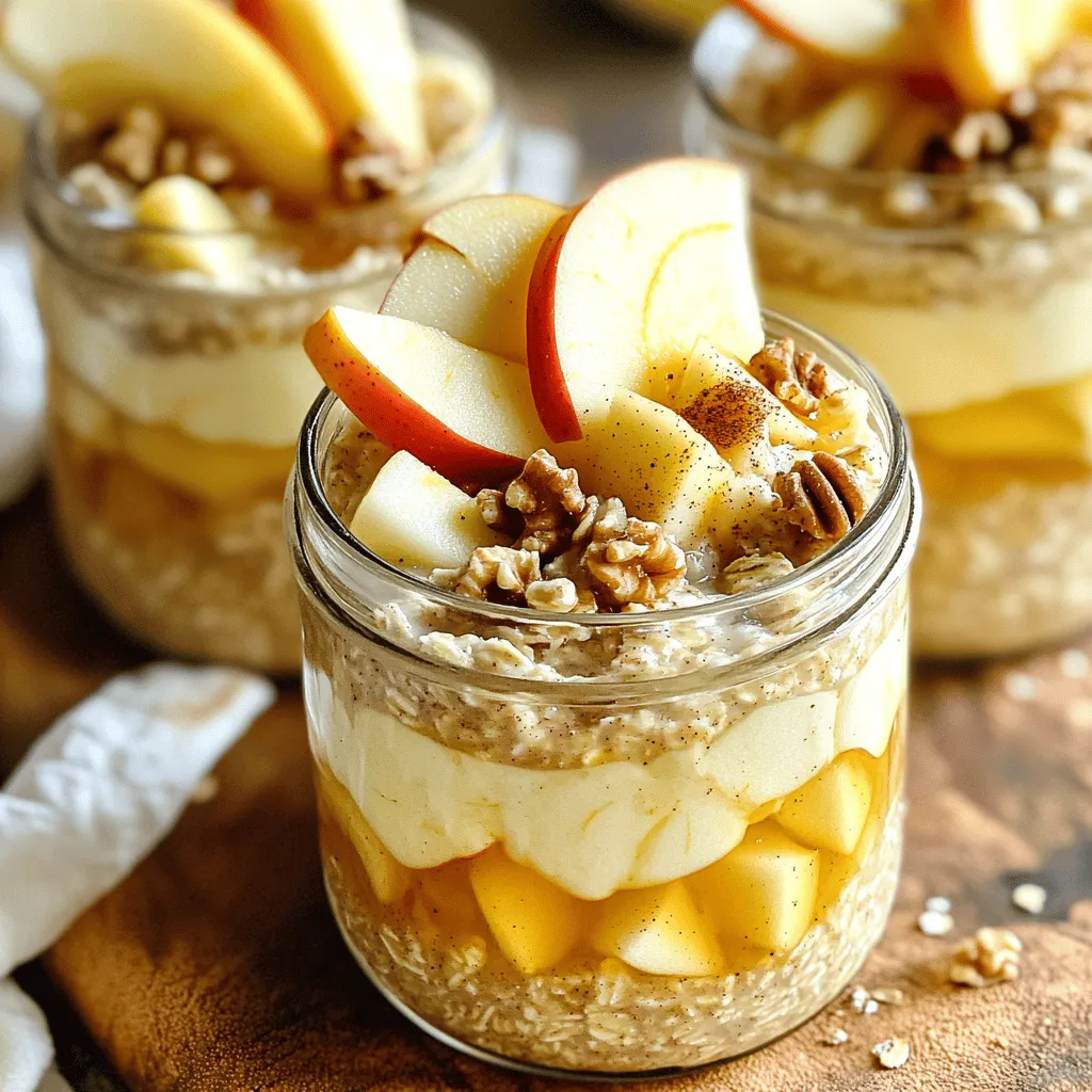 - Presentation Tips: Serve the oats in clear jars to showcase the inviting layers and textures. Garnish with a sprinkle of cinnamon and a slice of apple on top for an attractive finish.