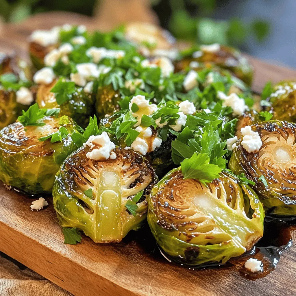 ![Let’s gather the items we need for this tasty dish. You will love how easy it is! Here’s what you will need: - 1 pound Brussels sprouts, trimmed and halved - 3 tablespoons balsamic vinegar - 2 tablespoons honey - 3 tablespoons olive oil - 2 cloves garlic, minced - Salt and pepper to taste - Optional garnish: 1/4 cup crumbled feta cheese, 2 tablespoons chopped fresh parsley These fresh Brussels sprouts bring a great crunch. The balsamic vinegar adds a sweet and tangy flavor. Honey gives it a nice touch of sweetness. Olive oil helps everything roast to perfection. Garlic adds a warm taste, while salt and pepper enhance all the flavors. If you want to make it extra special, consider adding feta cheese and parsley on top for serving. This recipe is simple yet full of flavor, making it a perfect side dish. Check out the Full Recipe for more details! 1. Preheat the oven to 400°F (200°C). This helps the Brussels sprouts cook evenly. 2. In a large bowl, whisk together the balsamic vinegar, honey, olive oil, minced garlic, salt, and pepper until well combined. This mixture makes the sprouts sweet and tangy. 3. Add the halved Brussels sprouts to the bowl and toss them in the balsamic mixture until fully coated. Make sure each sprout gets a good amount of sauce. 1. Spread the coated Brussels sprouts in a single layer on a baking sheet lined with parchment paper. This keeps them from sticking. 2. Roast in the preheated oven for 25-30 minutes, or until the Brussels sprouts are tender and caramelized. Stir halfway through for even cooking. This step is key for a nice brown color. 1. Once done, remove from the oven and let them cool for about 5 minutes. This lets the flavors settle. 2. If desired, sprinkle crumbled feta cheese and fresh parsley over the Brussels sprouts before serving. These garnishes add a fresh touch and look great. For the complete recipe, check out the [Full Recipe]. A good glaze makes all the difference. You want an even coating on each sprout. This helps them caramelize nicely. When you toss them in the balsamic mixture, ensure every sprout is coated. It gives a rich flavor and a beautiful color. Stirring is key while they roast. I recommend stirring halfway through cooking. This ensures they cook evenly. You'll get that lovely caramelization on all sides. To boost flavor, try adding fresh herbs or spices. Thyme or rosemary pairs well with Brussels sprouts. You can also add a pinch of red pepper flakes for warmth. Using aged balsamic vinegar adds depth. It has a sweeter, thicker texture. This can elevate your dish and make it stand out. A little goes a long way! Balsamic glazed Brussels sprouts pair well with many mains. They complement roasted chicken or grilled steak wonderfully. If you want a vegetarian option, serve them with quinoa or a hearty grain salad. For plating, think about color and contrast. A sprinkle of feta adds a nice touch. Fresh parsley gives a pop of green. Arrange them artfully on the plate for an inviting look. For the full recipe, check out the Balsamic Bliss Brussels Sprouts! {{image_2}} You can switch out honey for maple syrup. Maple syrup gives a unique flavor. It adds a hint of caramel. Both sweeteners work well. Honey is sweeter, while maple is milder. They both enhance the balsamic tang. Choose what you enjoy more. Adding nuts or seeds can boost crunch. Chopped walnuts or pecans add depth. Pumpkin seeds also bring a nice texture. Mix them in before roasting for a delightful surprise. Incorporating bacon can elevate the dish. The salty, smoky flavor pairs perfectly. Just chop and cook the bacon first. Add it to the Brussels sprouts before roasting. You’ll enjoy a savory crunch with each bite. Sautéing gives a quick and tasty option. Heat olive oil in a pan. Add the Brussels sprouts and cook until golden. This method is faster, but you won’t get the same caramelization. Air frying Brussels sprouts is a fun twist. The air fryer cooks them quickly. You get crispy edges without much oil. Toss the sprouts with the balsamic mix first. Then, air fry for about 15 minutes. It’s a speedy way to enjoy this dish. For the full recipe, check out the Balsamic Bliss Brussels Sprouts section. To keep your Balsamic Glazed Brussels Sprouts fresh, use airtight containers. Glass or plastic containers work well. Store them in the fridge within two hours of cooking. They stay tasty for about three to four days. When reheating, aim to keep the sprouts crispy. Place them in a warm oven at 350°F (175°C) for about 10-15 minutes. You can also use a skillet over medium heat. Stir them gently to avoid burning. Yes, you can freeze Brussels sprouts! To freeze, place them in a single layer on a baking sheet. Freeze until solid, then transfer to a freezer bag. They last up to three months. To thaw, place them in the fridge overnight. For best results, reheat without thawing. Enjoy your delicious Balsamic Glazed Brussels Sprouts later! For the full recipe, check out the instructions above. Balsamic glazed Brussels sprouts last about 3 to 4 days in the fridge. Store them in a sealed container to keep them fresh. The glaze helps maintain their flavor and moisture, making them a great leftover dish. Yes, you can make this recipe ahead of time. Prep the Brussels sprouts and the balsamic mixture a day before. Keep them separate until you are ready to roast. This saves time and ensures they taste fresh. Brussels sprouts are very healthy! They are low in calories and high in fiber. They also provide vitamins C and K. Plus, they contain antioxidants, which are great for your overall health. Adding this veggie to your meals boosts nutrition. You can use frozen Brussels sprouts, but fresh ones are better. Frozen sprouts may not get as crispy. If you use frozen, bake them for a few extra minutes to ensure they cook through. Thaw them before tossing in the glaze. You can serve these Brussels sprouts with many dishes. They pair well with roasted meats, like chicken or pork. They al