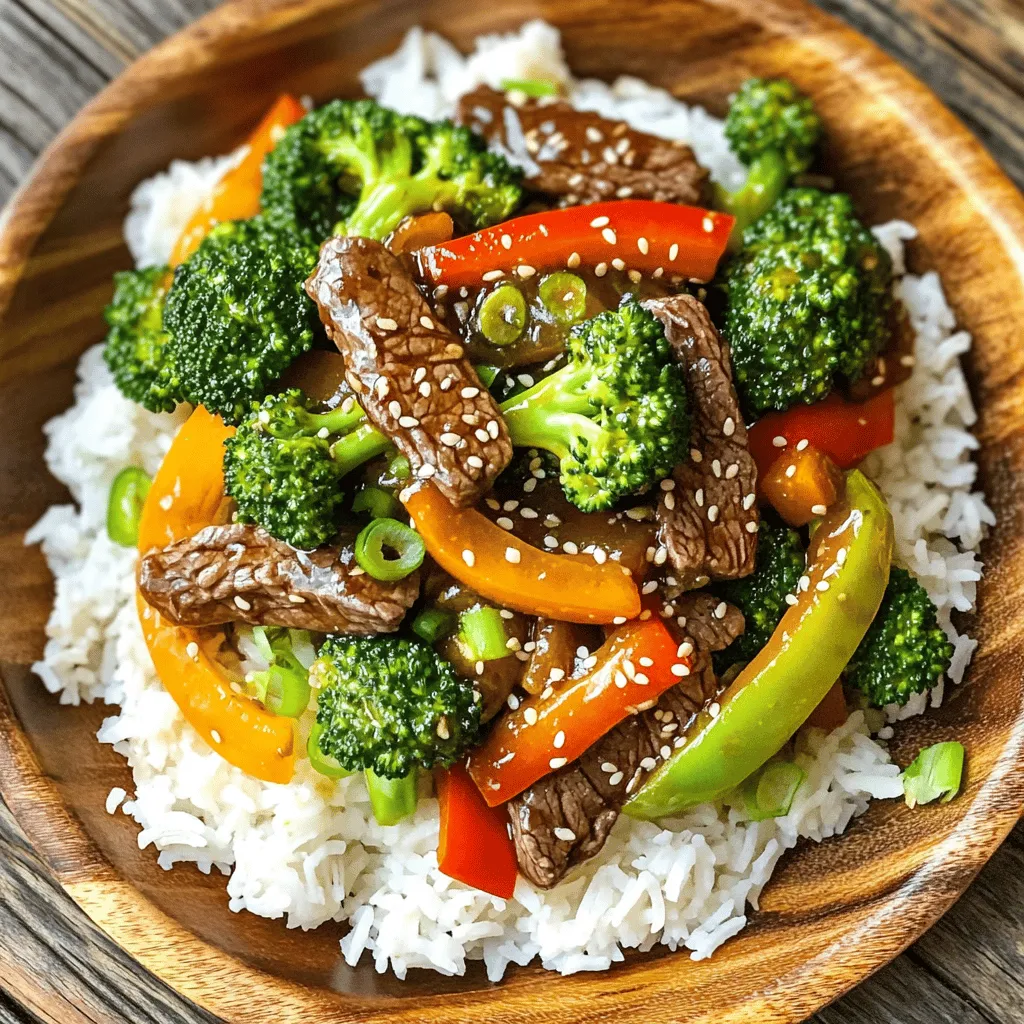 For this dish, I use beef sirloin for its tender texture and rich flavor. Broccoli florets add a nice crunch and vibrant color. I like to include bell pepper, which brings sweetness to the mix. The marinade consists of soy sauce, and for an extra layer of flavor, I sometimes add oyster sauce. Cornstarch helps to make the beef tender and gives it a nice glaze.