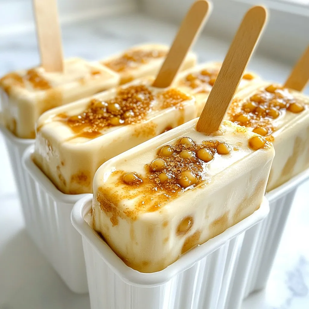 To make these tasty popsicles, you will need: - 1 cup tapioca pearls - 1 cup brown sugar - 2 cups water (for cooking pearls) - 2 cups milk (whole, almond, or oat milk) - 1 cup brewed black tea, cooled - ½ teaspoon vanilla extract - Pinch of salt These ingredients give the popsicles a rich taste and smooth texture. The tapioca pearls add a fun chewy element. The brown sugar brings a deep sweetness that pairs well with the creamy milk and tea. If you want to make your popsicles even creamier, consider adding: - ½ cup condensed milk This addition will make your popsicles rich and smooth. You can also adjust the sweetness to your liking. To make these popsicles, you will need: - A pot for boiling water - A small saucepan for the syrup - Mixing bowls for combining ingredients - Popsicle molds to shape the popsicles - Popsicle sticks for easy handling Having the right tools will make your cooking easier and more fun. With these items ready, you can start your boba popsicle journey! {{ingredient_image_1}} Start by boiling 2 cups of water in a pot. When it bubbles, add 1 cup of tapioca pearls. Cook them for about 20 minutes. Stir them often to stop them from sticking. When they are soft, strain them and rinse under cold water. This keeps them from getting sticky. In a small pot, mix 1 cup of brown sugar with 1 cup of water. Heat it over medium heat. Stir until the sugar melts. Let it simmer for a few minutes. After that, let it cool for about 5 minutes. This syrup adds a nice sweet touch. Grab a mixing bowl. Pour in 1 cup of cooled black tea. Then add 2 cups of milk. If you want it creamier, include ½ cup of condensed milk. Next, add ½ teaspoon of vanilla extract and a pinch of salt. Mix everything well until it’s smooth. Take your popsicle molds. Put a layer of cooked tapioca pearls in the bottom. Then, pour in the milk tea mix until each mold is three-quarters full. Drizzle some of the brown sugar syrup on top. This adds flavor and looks great. Insert popsicle sticks into each mold. Place them in the freezer for at least 6 hours. When they are solid, take them out. To remove the popsicles, run the molds under warm water for a few seconds. Enjoy your cool and creamy treat! To cook tapioca pearls, start by boiling two cups of water. Add one cup of tapioca pearls and stir. Cook for about 20 minutes. You want them soft but not mushy. Stir often to keep them from sticking. After cooking, rinse them under cold water. This helps stop the cooking process and cools them down. For the best creaminess in your popsicles, use whole milk. Whole milk gives a rich taste and smooth texture. Almond and oat milk are great for a dairy-free option. Both add unique flavors. If you want extra creaminess, add half a cup of condensed milk to the mix. It makes the popsicles even richer and sweeter. You can enhance the flavor of your popsicles by adding vanilla extract. Just a half teaspoon can elevate the taste. A pinch of salt is also helpful. It balances the sweetness and brings out the flavors. Feel free to experiment with other flavors too. You can add spices like cinnamon or even a bit of cocoa powder for fun twists. Pro Tips Perfectly Cooked Pearls: Make sure to stir the tapioca pearls occasionally while cooking to prevent them from sticking together and ensure they cook evenly. Cool the Syrup: Allow the brown sugar syrup to cool for a few minutes before adding it to the popsicle molds to avoid melting the milk tea mixture. Layering Technique: For an attractive look, layer the tapioca pearls and milk tea mixture carefully in the molds, allowing the syrup to create a beautiful swirl effect. Easy Release: To easily remove the popsicles from their molds, run them under warm water for a few seconds before pulling them out. {{image_2}} You can play with the base of your popsicles. Use different milk teas for a twist. Try green tea for a fresh flavor. Chai tea adds spice and warmth. Matcha gives a nice green color and earthy taste. Each tea brings its own charm to the mix. Experiment with what you love best. If you want a healthier option, swap out the brown sugar. Honey or maple syrup works well. These sweeteners add flavor and some nutrients. Stevia or agave syrup can help cut down sugar. Adjust the amount based on your taste. You can still enjoy the sweet taste without the guilt. Add fruits or other flavors to make your popsicles fun. Try diced strawberries or mango for a fruity kick. A splash of coconut milk gives a tropical vibe. You can even mix in some matcha for a green tea twist. Get creative! Your taste buds will thank you. Store your leftover popsicles in an airtight container. This keeps them fresh and prevents freezer burn. You can also wrap each popsicle in plastic wrap for extra protection. Make sure to label the container with the date. These popsicles stay good for up to two months in the freezer. For best taste, enjoy them within a month. If you notice any ice crystals, they may not taste as good. To avoid this, keep the freezer temperature steady and low. When you’re ready to enjoy a popsicle, run it under warm water for a few seconds. This helps to loosen it from the mold. Avoid using a microwave; it can make the popsicle melt too fast. Serve them straight from the freezer for a cool and creamy treat! Yes, you can use other types of tea. Green tea or chai tea works well. Each tea gives a unique taste. Experiment with your favorites to find what you enjoy most. Just make sure the tea is brewed and cooled before mixing with milk. Yes, you can make these popsicles vegan. Use almond or oat milk instead of whole milk. Choose a plant-based sweetener instead of condensed milk. This way, you can still enjoy the creamy flavor without dairy. You can find ready-made Brown Sugar Boba Popsicles in Asian grocery stores. Some online retailers may also offer them. Check your local ice cream shop too. They might have their own version of this tasty treat. These popsicles need at least 6 hours to freeze. For 
