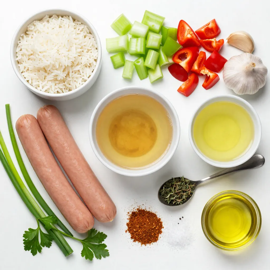 In this dish, the main ingredients form a hearty base. The long-grain rice cooks up fluffy and absorbs all the flavors. Turkey sausage adds protein and a nice savory taste. The mix of onion, bell pepper, and celery gives the dish a fresh crunch. Garlic adds a burst of flavor that makes everything pop.