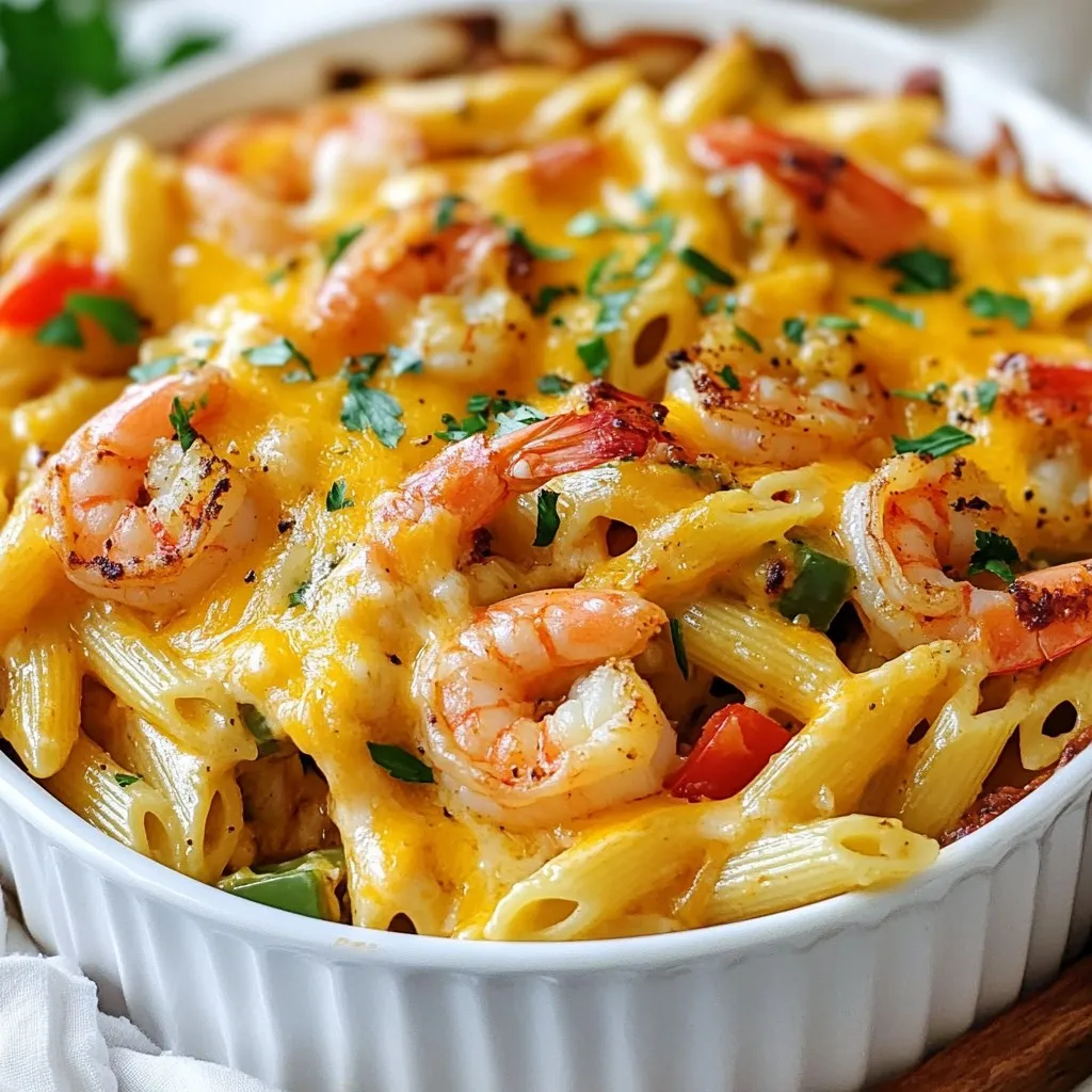 To make a delicious Cajun shrimp pasta bake, you need these simple ingredients: - 8 oz penne pasta - 1 lb large shrimp, peeled and deveined - 1 red bell pepper, diced - 1 green bell pepper, diced - 1 small onion, chopped - 3 cloves garlic, minced - 1 cup heavy cream - 1 cup shredded cheddar cheese - 1 cup shredded mozzarella cheese - 2 tablespoons Cajun seasoning - 1 tablespoon olive oil - Salt and pepper to taste - Fresh parsley, chopped (for garnish) Each ingredient plays a key role in making this dish hearty and flavorful. The penne pasta serves as the base, holding all the tasty bits together. The shrimp adds protein and a nice texture. The bell peppers and onion bring color and sweetness, while garlic gives a rich flavor. The heavy cream binds it all, making it creamy and rich. The cheeses add a gooey, melty topping that everyone loves. Cajun seasoning provides the signature kick that makes this dish unique. Finally, olive oil is essential for sautΓ©ing and bringing out the flavors. For the best flavor, season your shrimp and vegetables well. Adjust the Cajun seasoning to your taste. If you want more heat, add a pinch of cayenne pepper or hot sauce. Salt and pepper enhance every bite, so don't skip those. You can also experiment with herbs like thyme or oregano for added depth. These simple ingredients and seasoning tips will lead you to a satisfying meal, perfect for any night of the week. {{ingredient_image_1}} 1. Preheat the oven and boil the pasta First, set your oven to 375Β°F (190Β°C). This will get it ready for baking. While it heats up, boil a large pot of salted water. Cook the penne pasta according to the package directions until it is al dente. This means it should be firm but cooked through. Drain the pasta and set it aside. 2. SautΓ© the onion and garlic In a large skillet, heat 1 tablespoon of olive oil over medium heat. Add the chopped onion and minced garlic. Cook these for about 3-4 minutes until they feel soft and smell great. This step builds a strong base for flavor. 3. Cook the shrimp and vegetables Next, toss in the diced red and green bell peppers. SautΓ© these for another 3-5 minutes until they become tender. After that, add the shrimp. Cook them for about 3-4 minutes, until they turn pink and opaque. Sprinkle in 2 tablespoons of Cajun seasoning, making sure to coat the shrimp and veggies well. Season with salt and pepper to taste. 4. Combine the pasta and sauce Pour in 1 cup of heavy cream. Stir it all together and let it simmer for 2-3 minutes. This will create a rich and creamy sauce. In a large mixing bowl, combine the cooked penne pasta with the shrimp mixture. Make sure everything mixes well. 5. Bake and final touches Transfer the combined mixture to a greased 9x13 inch baking dish. Top it with 1 cup each of shredded cheddar and mozzarella cheese. Bake in your preheated oven for 20-25 minutes, or until the cheese is melted and bubbly. Once done, take it out of the oven and let it cool for a few minutes. Garnish with fresh parsley before serving. - To ensure shrimp are cooked perfectly, pay close attention. Cook them just until they turn pink and opaque, about 3-4 minutes. Overcooking makes shrimp tough. - For flavor enhancement, add a pinch of cayenne for heat or a squeeze of lemon juice for brightness. Fresh herbs like thyme or basil can also boost taste. - When storing leftovers, keep them in an airtight container. They can last up to three days in the fridge. If you want to save it longer, freeze it for up to three months. - For reheating, use the oven or stovetop. This keeps the dish from getting soggy. Avoid the microwave if possible, as it may make the pasta chewy. - Serve the pasta bake in individual bowls for a nice touch. This makes it easy for guests to enjoy their portions. - Drizzle with a little extra cream for a rich finish. Garnish with fresh parsley and a sprinkle of Cajun seasoning for color and flair. This adds a lovely visual appeal and enhances the dish's flavor. Pro Tips Perfect Pasta: Cook the penne pasta just until al dente, as it will continue to cook in the oven. This helps prevent mushy pasta in the final dish. Fresh Shrimp: Use fresh shrimp if possible for the best flavor. If using frozen, ensure they are fully thawed and patted dry before cooking. Cajun Kick: Feel free to adjust the Cajun seasoning to your taste. If you like it spicier, add a bit more or include some cayenne pepper. Cheese Blend: Experiment with different cheese blends. Adding pepper jack or gouda can give your pasta bake an extra layer of flavor. {{image_2}} - Alternative pasta options: You can swap penne for rotini, fusilli, or even gluten-free pasta. Each shape holds sauce well and adds a fun twist. - Different seafood choices: If shrimp isn’t your thing, try scallops, crab, or even cooked chicken. These options bring new flavors while keeping it hearty. - Vegetarian version ideas: For a meatless meal, use sautΓ©ed mushrooms or chickpeas. Add more bell peppers and zucchini for extra nutrition and color. - Adjusting spice levels: If you like spice, add more Cajun seasoning or a dash of hot sauce. For less heat, use mild seasoning or skip it altogether. - Adding additional vegetables or protein: Toss in spinach, kale, or broccoli for a veggie boost. For more protein, consider adding cooked sausage or white beans to make it even heartier. After enjoying your Cajun shrimp pasta bake, store leftovers in the fridge. Use an airtight container. This keeps moisture in and prevents drying out. Your dish will stay fresh for about three to four days. If you want to keep it longer, try freezing. Let the bake cool completely. Then, cut it into portions and wrap each piece tightly. You can also place it in a freezer-safe container. It will last for up to three months in the freezer. Just remember to label your container with the date! When it’s time to enjoy leftovers, you have a few options. The best way is to reheat in the oven. Preheat your oven to 350
