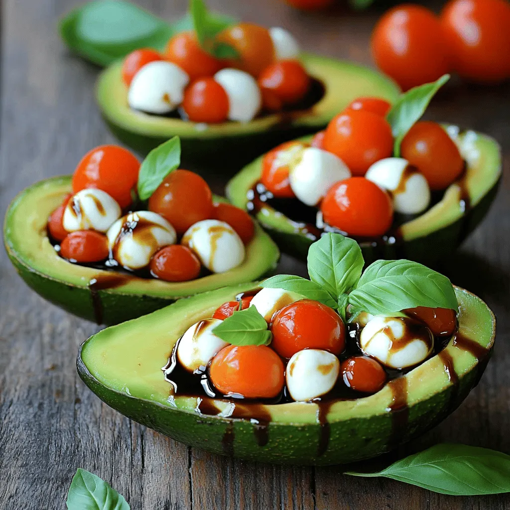 ![To make Caprese stuffed avocados, you need a few key items. Here’s what you will use: - 2 ripe avocados - 1 cup cherry tomatoes, halved - 1 cup fresh mozzarella balls, drained - ¼ cup fresh basil leaves, chopped - 2 tablespoons balsamic glaze - 1 tablespoon olive oil - Salt and pepper to taste These ingredients create a fresh and tasty filling that pairs perfectly with the creamy avocado. The ripe avocados provide a smooth base that holds the bright flavors of tomatoes and mozzarella. Feel free to get creative with your Caprese stuffed avocados! Here are some fun ideas to add extra flair: - Red onion, thinly sliced - Pine nuts or walnuts for crunch - Spinach or arugula for a peppery twist - A drizzle of pesto for an herbaceous kick Using these optional ingredients lets you personalize your dish. Mixing and matching can lead to new flavor combos that you’ll love. Having the right tools makes cooking easier. Here’s what I recommend for this recipe: - A sharp knife for cutting avocados and veggies - A mixing bowl for combining the filling - A spoon for scooping out the avocado - A small measuring cup for liquids - A serving platter for presentation These tools will help you prepare, mix, and serve your Caprese stuffed avocados with ease. For the full recipe, you can find all the steps in the main article. Start by cutting the avocados in half. Remove the pit with a spoon. Be gentle to avoid bruising the flesh. Scoop out a little bit of the avocado to make room for the filling. Place the scooped avocado in a bowl for later use. In a clean bowl, add the halved cherry tomatoes and the mozzarella balls. Then, chop the fresh basil and add it to the bowl. Next, include the reserved avocado flesh. Drizzle in the olive oil and season with salt and pepper. Mix everything carefully until combined. Make sure all ingredients are evenly distributed. Take the avocado halves and carefully fill them with the Caprese mixture. Use a spoon to pack the filling down gently. Make sure to fill them generously, allowing the mixture to mound a bit on top. Before you serve the stuffed avocados, drizzle balsamic glaze over each half. This adds a nice touch of sweetness and flavor. You can be generous with the glaze, as it enhances the overall taste. For the Full Recipe, check the recipe section above. Enjoy your delicious Caprese stuffed avocados! To make Caprese stuffed avocados, pick ripe avocados. They should feel firm but yield slightly when pressed. Look for a dark green or black color. Avoid avocados with brown spots or soft spots. A good avocado makes all the difference in taste and texture. You want them creamy and rich to balance the fresh flavors. You can prepare the filling ahead of time. Mix the tomatoes, mozzarella, basil, and seasonings. Store it in the fridge for up to a day. When ready to serve, cut the avocados. Scoop out the flesh, and fill them with the mix. Drizzle with balsamic glaze just before serving. This keeps the avocados fresh and green. For extra flavor, try adding sliced olives or roasted red peppers. You can also sprinkle some red pepper flakes for heat. A squeeze of lemon juice brightens the dish. If you love nuts, sprinkle some pine nuts or walnuts on top. These add crunch and depth to your Caprese stuffed avocados. For the detailed recipe, check out the Full Recipe. {{image_2}} You can switch up the cheese in your Caprese stuffed avocados for new flavors. Try goat cheese for a tangy twist. Feta also works well, adding a salty kick. If you love sharp cheese, use aged cheddar. The key is to choose a cheese that melts well, which makes each bite creamy and delicious. Want to make your dish more filling? Add proteins like grilled chicken or shrimp. Both pair well with the fresh flavors. For a vegetarian option, use chickpeas or even black beans. They add protein and a different texture. These additions turn your dish into a full meal. Seasonal veggies can bring new life to your Caprese stuffed avocados. In summer, add grilled zucchini or bell peppers for a smoky taste. In fall, roasted butternut squash or sweet potatoes work great. They add depth and warmth to your meal. You can even toss in some fresh corn for a sweet crunch. For the full recipe, check [Full Recipe]. To keep your stuffed avocados fresh, wrap them tightly in plastic wrap. This helps prevent browning. Place them in an airtight container for extra protection. Store them in the fridge. If you have extra filling, keep it in a separate container. This way, you can enjoy it later. You should not reheat stuffed avocados. The avocado gets mushy when heated. Instead, try refreshing them. Drizzle a little olive oil or balsamic glaze before serving. This adds flavor and makes them look nice. If they seem dry, add a sprinkle of salt and pepper to enhance taste. The shelf life of the finished dish is about one day in the fridge. The avocados will brown quickly, so eat them soon. Fresh mozzarella lasts about five days, while cherry tomatoes can last up to a week. Basil is best used fresh but can last three days when stored properly. For the best taste, use all ingredients fresh, as they add flavor and color to your meal. For the complete recipe, check out the Full Recipe. Yes, you can make Caprese stuffed avocados ahead of time. However, I recommend filling them just before serving. The avocado can brown quickly. To slow this down, sprinkle some lemon juice on the exposed flesh. This keeps it fresh longer and preserves its green color. If you don’t have mozzarella cheese, you can use feta or goat cheese. Both add a nice tang. You can also try burrata for a creamier texture. Just keep in mind that each cheese will change the flavor a bit. Ripe avocados feel slightly soft when you press them gently. If they feel hard, they need more time. A dark green or almost black skin is usually a good sign of ripeness. If they are too soft, they may be overripe. Yes, you can use a simple balsamic vinegar if you don’t have glaze. It wil