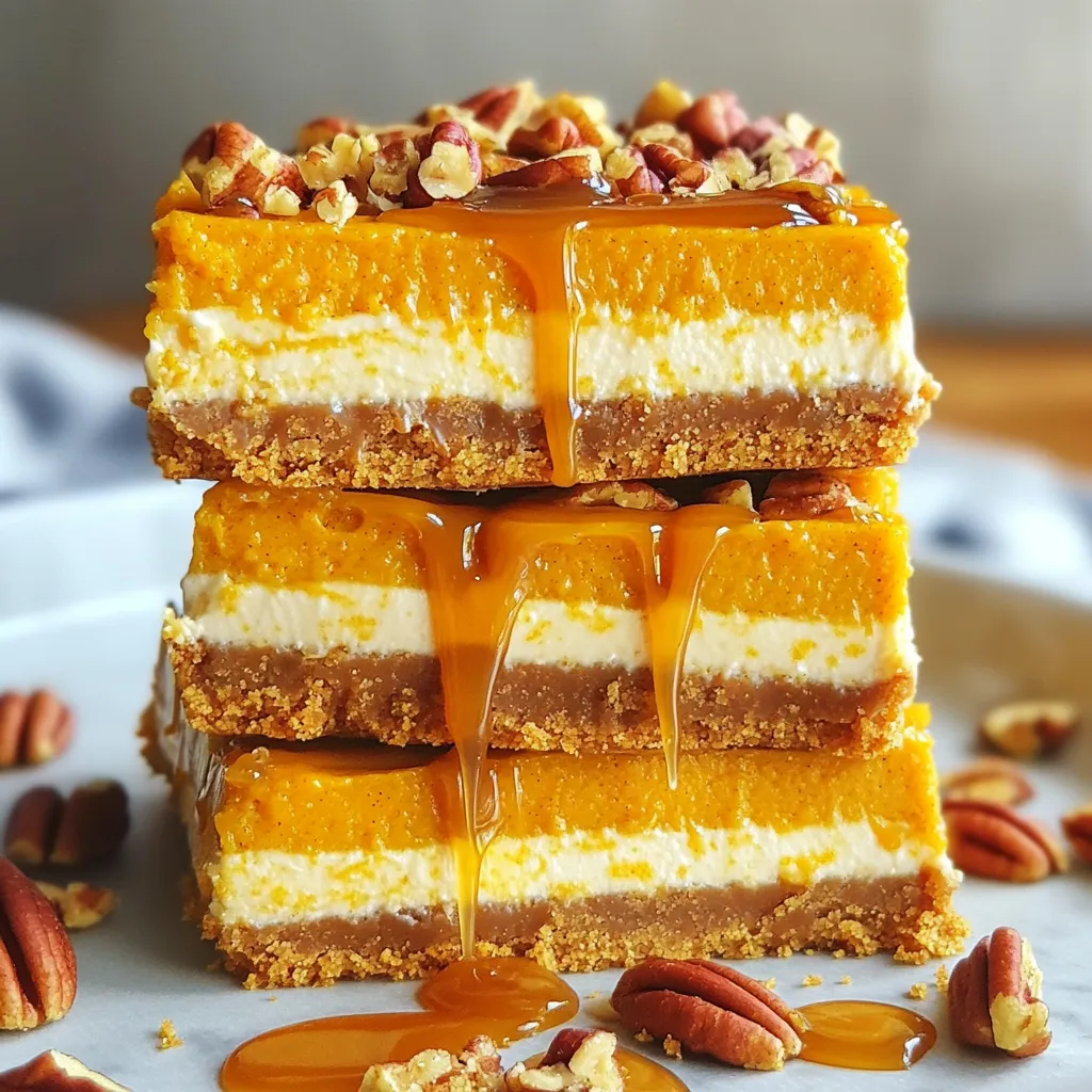 Let the bars cool at room temperature first. Then chill them for at least two hours. Drizzle warm caramel sauce on top before serving. Sprinkle with pecans for a nice crunch. Enjoy your fall treat!