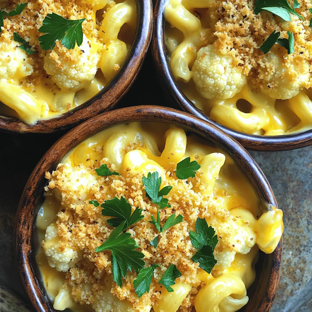 For this dish, you need a medium head of cauliflower. Cut it into small florets. This will give your mac and cheese a nice texture. You also need 8 ounces of elbow macaroni. If you want, use gluten-free pasta instead. The pasta adds a classic touch to this recipe, making it feel comforting.