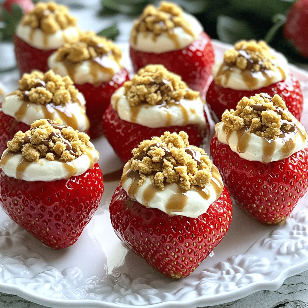 Cheesecake stuffed strawberries are simple and delicious. Fresh strawberries filled with rich cream cheese create a perfect snack. Remember to choose bright red, firm strawberries for the best taste. You can customize this treat with different cream cheese flavors or toppings. Store any leftovers properly to keep them fresh. Making them ahead of time works well, too. You can enjoy these treats at events or with friends. I hope you try this easy recipe and delight in the flavors!