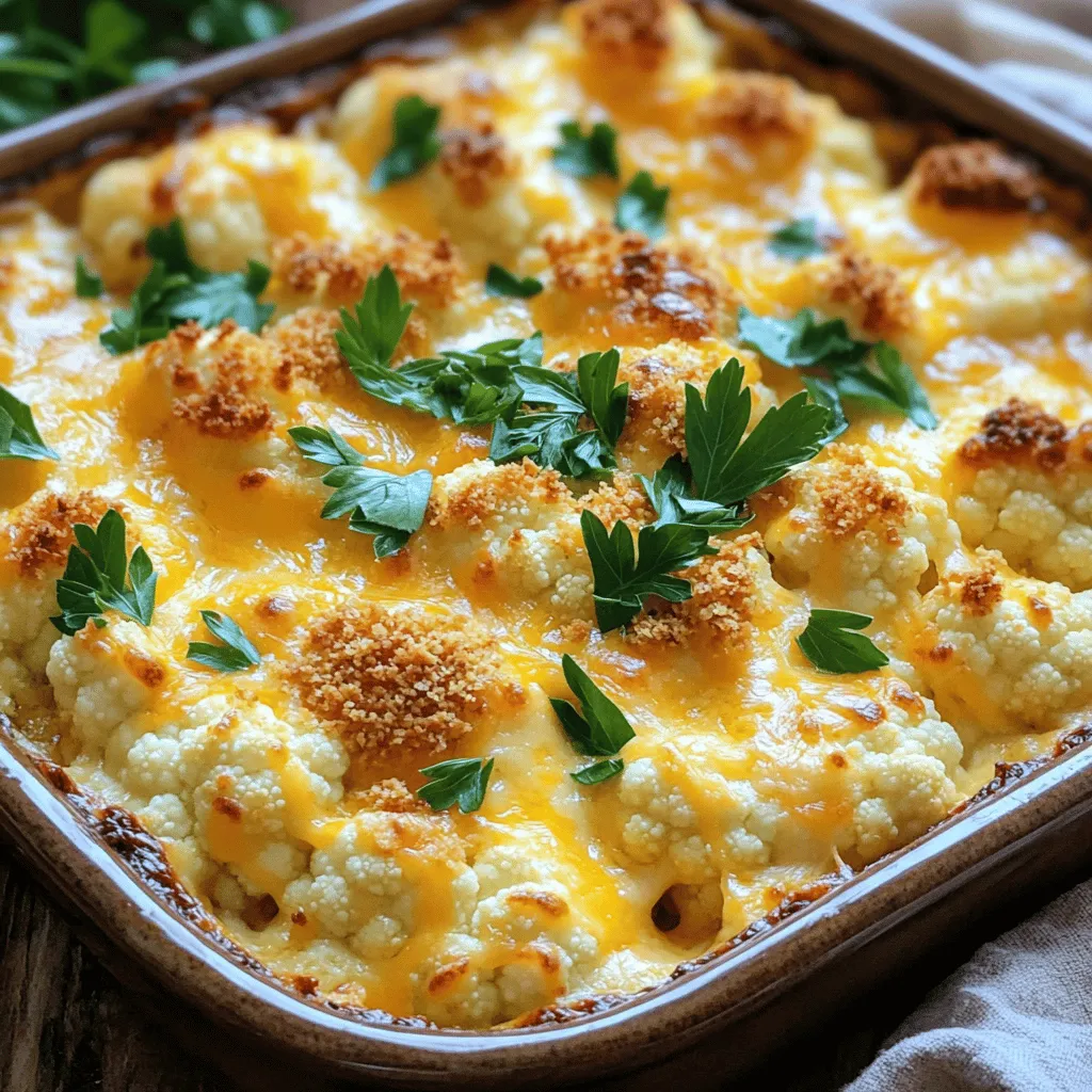 If you want a gluten-free Cheesy Cauliflower Bake, swap breadcrumbs for crushed gluten-free crackers. You can also use almond flour or ground oats. Both options give a nice crunch without the gluten. Always check labels to ensure your ingredients are gluten-free. Enjoy your tasty, safe dish!
