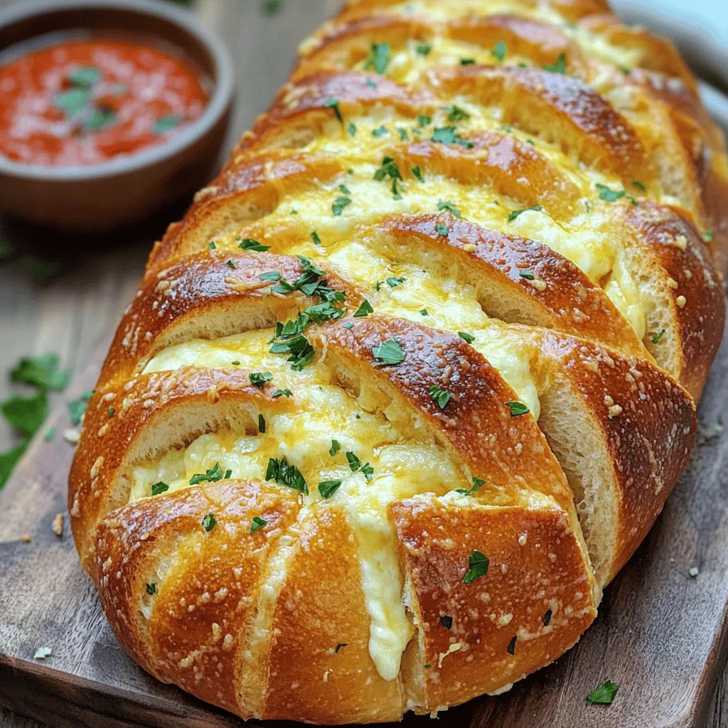 To make your Cheesy Garlic Pull-Apart Bread extra tasty, let the garlic butter soak. When you brush it into the cuts, the bread absorbs all that flavor. This step is key to a rich taste. The longer it sits, the more flavor it gets.