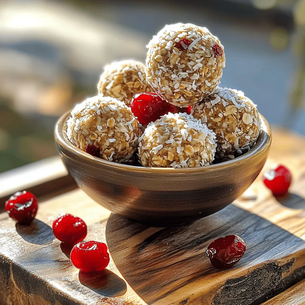To make Cherry Almond Energy Balls, you need simple, healthy ingredients. This recipe takes about 10 minutes to prep and gives you about 15 to 20 energy balls. You mix everything in a food processor, shape the mix into balls, and chill them. - 1 cup pitted dried cherries: They add natural sweetness and a chewy texture. - 1 cup raw almonds: Almonds provide healthy fats, protein, and crunch. - 1 cup rolled oats: Oats give structure and fiber, making these snacks filling. - 2 tablespoons almond butter: This adds creaminess and binds the mix. - 2 tablespoons honey or maple syrup: These sweeteners help bind and add flavor. - 1 teaspoon vanilla extract: It enhances the overall taste with a warm note. - 1/2 teaspoon cinnamon: This spice adds warmth and depth to the flavor. - Pinch of salt: Salt enhances sweetness and balances flavors. - 1/4 cup unsweetened shredded coconut (optional): Coconut adds a fun texture and flavor when used for coating. This recipe is easy to adjust for dietary needs. To make it vegan, simply use maple syrup instead of honey. For gluten-free options, ensure you use certified gluten-free oats. These changes keep the energy balls tasty and accessible for everyone! To make Cherry Almond Energy Balls, you start with the right ingredients. Gather everything you need first. 1. In a food processor, add: - 1 cup pitted dried cherries - 1 cup raw almonds - 1 cup rolled oats - 2 tablespoons almond butter - 2 tablespoons honey or maple syrup - 1 teaspoon vanilla extract - 1/2 teaspoon cinnamon - A pinch of salt 2. Pulse the mixture until it looks crumbly and sticks together. Check that all parts blend well. You might need to stop and scrape the sides to mix. 3. When mixed, wet your hands. This helps prevent sticking. Form small balls, about 1 inch wide. 4. If you want, roll each ball in unsweetened shredded coconut. This adds a nice touch and flavor. 5. Place the balls on a parchment-lined baking sheet. Pop them in the fridge for at least 30 minutes. This helps them firm up. 6. After they set, store the balls in an airtight container in the fridge. Using a food processor can make this recipe quick and easy. Here are some tips: - Cut larger ingredients: If your dried cherries or almonds are big, chop them first. This helps the processor blend them better. - Don’t overfill: If you add too much at once, it may not mix well. Blend in batches if needed. - Pulse, don’t blend: Pulsing helps mix your ingredients without turning them into mush. Even simple recipes can have pitfalls. Here are mistakes to watch for: - Skipping the chilling step: Chilling helps the energy balls hold their shape. Don’t skip it! - Too many wet ingredients: If you add too much honey or almond butter, the mixture can get too sticky. Adjust as needed. - Not measuring: Accurate measurements keep the flavors balanced. Use measuring cups for best results. Now that you know the steps, you can make these energy balls with confidence. Enjoy your tasty, healthy snack! To make perfect cherry almond energy balls, choose fresh, high-quality dried cherries. Look for ones without added sugar. Use raw almonds for a great crunch. Blend the mixture until it is sticky. This helps the balls hold together. Wet your hands to form the balls. This prevents the mixture from sticking to your hands. Refrigerate the balls for at least 30 minutes. This helps them firm up nicely. If they feel too soft, add more oats. This will help with the texture. Adding toppings can make your energy balls fun and tasty. You can roll them in shredded coconut for a tropical twist. Chopped nuts or seeds also work well. You might try using cocoa powder for a chocolatey taste. For a sweet touch, drizzle melted dark chocolate on top. This adds flavor and makes them look fancy. You can even sprinkle sea salt on top for a sweet-savory combo. You can boost the flavor of your energy balls with some easy additions. Try adding a tablespoon of chia seeds or flax seeds. These add nutrition and a nice crunch. For a spicy note, consider adding a pinch of nutmeg or ginger. You can also mix in a scoop of protein powder. This gives you an extra energy boost. Experiment with different flavors to find your favorite. The key is to have fun and enjoy the process. For the complete process, check the Full Recipe. {{image_2}} You can easily change the taste of cherry almond energy balls. Want chocolate? Add 1/3 cup cocoa powder to the mix. You will love how it blends with cherry! For coconut fans, mix in 1/2 cup unsweetened shredded coconut. This gives a tropical twist. You can even toss in some mini chocolate chips for a sweet surprise. Not everyone can enjoy nuts or sugar. To make these energy balls nut-free, switch almonds for sunflower seeds. This keeps the crunch while avoiding allergens. For a sugar-free option, use agave syrup or a sugar substitute like stevia. These swaps let everyone enjoy this tasty treat! You can adjust the fruits in your energy balls based on the season. In summer, mix in dried apricots or peaches. In fall, try dried apples or pumpkin spice. This adds warmth and flavor that fits the season. You can even sprinkle in some nutmeg or ginger for a fun twist. For the full recipe, feel free to check out the details! To keep your cherry almond energy balls fresh, store them in an airtight container. Place a piece of parchment paper between layers to prevent sticking. I find that a glass container works best. It keeps the flavors intact and prevents moisture. Always keep them in the fridge. This ensures they stay firm and tasty. If you wish to store them longer, freezing is a great option. To freeze, first, place the energy balls on a baking sheet. Make sure they are not touching. Freeze them for about one hour, or until firm. Then, transfer the balls into a freezer-safe bag or container. Label the bag with the date. They can last up to three months in the freezer. When ready to eat, just thaw them in the fridge overnight. These energy balls stay fresh f
