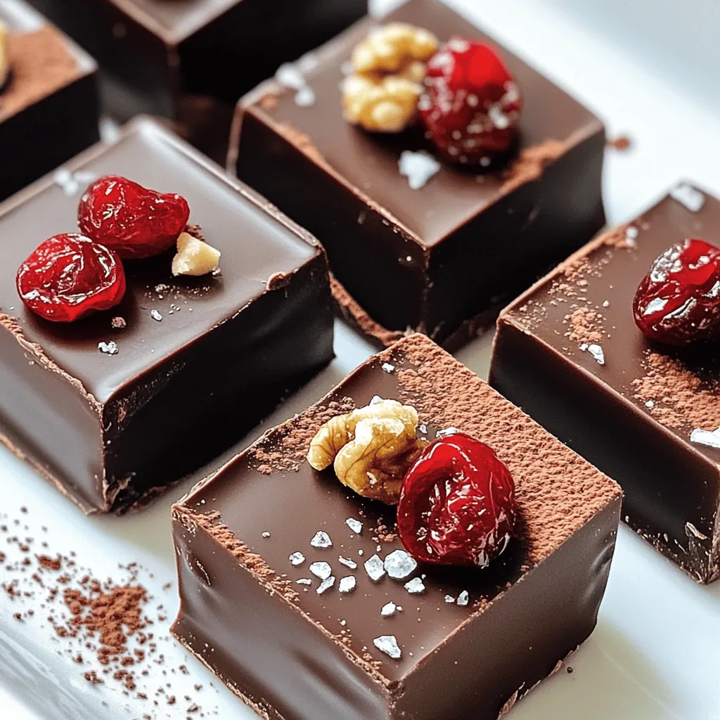 A pinch of sea salt can make the chocolate taste richer. If you like, try adding orange zest for a fruity twist. Almond extract can add a lovely nutty flavor too. For the full recipe, check out the Cherry Chocolate Fudge Bites section.