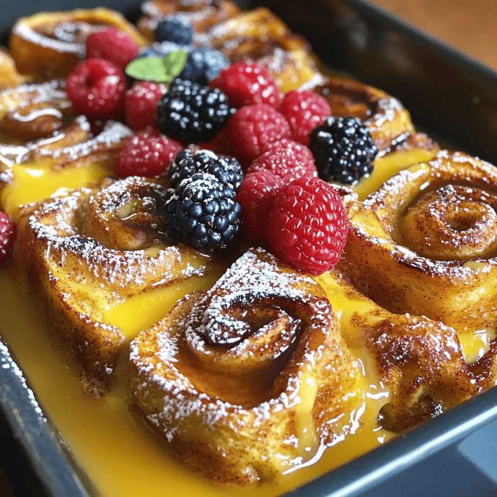 Watch out for over-soaking the rolls. If you let them sit too long, they may turn mushy. Just a few minutes is enough. Another mistake is not preheating the oven. A hot oven ensures your bake cooks evenly. Always preheat to 375°F (190°C) before baking. Following these tips will help you create a perfect Cinnamon Roll French Toast Bake.