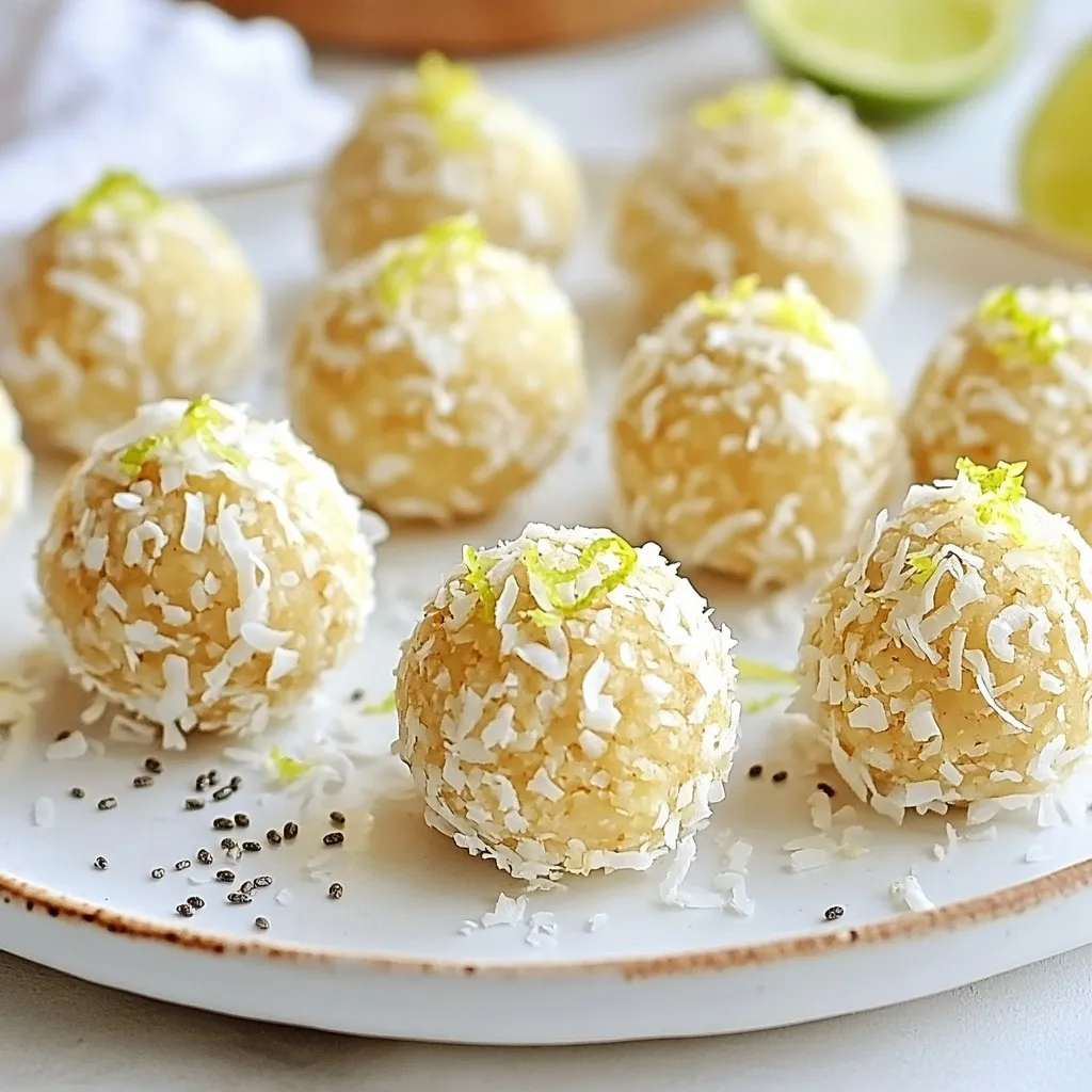 Delicious and nutritious energy balls made with coconut, lime, and oats, perfect for a quick snack.