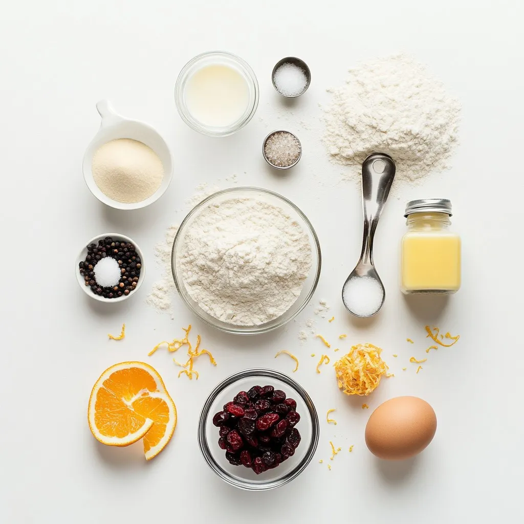 To make cranberry orange scones, you will need the following: - 2 cups all-purpose flour - 1/4 cup granulated sugar - 1 tablespoon baking powder - 1/2 teaspoon baking soda - 1/2 teaspoon salt - 1/2 cup unsalted butter, cold and cubed - 1/2 cup dried cranberries - Zest of 1 orange - 1/2 cup buttermilk - 1 large egg - 1 teaspoon vanilla extract These ingredients create a tasty base for the scones. The dried cranberries add a sweet and tart flavor. The orange zest brightens up the dough and brings a fresh aroma. You can enhance your scones with a sprinkle of turbinado sugar on top. This sugar adds a nice crunch and extra sweetness. Feel free to get creative! You can also drizzle a simple orange glaze for a sweet finish. Each scone has around 200 calories. They contain about 8 grams of fat, 28 grams of carbs, and 4 grams of protein. These scones are a delightful treat but enjoy them in moderation! Pair them with tea or coffee for a perfect snack. {{ingredient_image_1}} Start by preheating your oven to 400°F (200°C). This step is key for perfect scones. While the oven heats, grab a baking sheet and line it with parchment paper. The parchment helps prevent sticking and makes cleanup easy. In a large mixing bowl, combine 2 cups of all-purpose flour, 1/4 cup of granulated sugar, 1 tablespoon of baking powder, 1/2 teaspoon of baking soda, and 1/2 teaspoon of salt. Whisk these dry ingredients well. This mix gives the scones a great rise and flavor. Next, add 1/2 cup of cold, cubed unsalted butter to the dry mix. Use your fingers or a pastry cutter to blend them together until the mix looks like coarse crumbs. This step is crucial as it creates a tender scone. Now, sprinkle in 1/2 cup of dried cranberries and the zest of 1 orange. Stir them in gently to spread out the flavor. In another bowl, whisk together 1/2 cup of buttermilk, 1 large egg, and 1 teaspoon of vanilla extract. Pour this wet mix into the dry mix. Stir just until combined; don’t overmix or your scones will be tough. Turn the dough onto a floured surface. Pat it into a circle about 1 inch thick. Cut this circle into 8 wedges, like a pizza. Place the wedges on your prepared baking sheet. If you want a sweet touch, sprinkle a little turbinado sugar on top. Bake for 15 to 20 minutes, or until they turn a nice golden brown. Let them cool on a wire rack before serving. To get soft and flaky scones, keep your butter cold. Cut it into small pieces before mixing it in the flour. This helps create those tender layers. When you mix, do it gently. Overmixing makes scones tough. You want to see little bits of butter in the dough. This adds to the texture. One common mistake is using warm butter. Warm butter can change the dough's texture. Another mistake is forgetting to measure ingredients carefully. Accurate measurements are key. Lastly, don’t skip the buttermilk. It adds moisture and gives a nice flavor. If you don’t have buttermilk, you can mix milk with vinegar as a substitute. Store leftover scones in an airtight container. Keeping them in a cool, dry place helps them last longer. You can also freeze scones if you want to save some for later. Wrap them tightly in plastic wrap and place them in a freezer bag. To reheat, just pop them in the oven for a few minutes. They will taste fresh again! Pro Tips Use Cold Butter: Ensure your butter is cold and cubed to create flaky layers in your scones. Don’t Overmix: Mix the dough until just combined to prevent tough scones; a few lumps are okay. Adjust for Sweetness: Taste your dough before baking; you can add more sugar if you prefer sweeter scones. Experiment with Flavors: Try adding different dried fruits or citrus zest for a unique twist on these scones. {{image_2}} You can change the flavors of your cranberry orange scones easily. Try adding nuts for crunch. Walnuts or pecans work well. You could also mix in chocolate chips for a sweet twist. If you like spices, add a pinch of cinnamon or ginger. These spices can give your scones a warm flavor. Experiment with your favorites until you find the best combo. If you need a gluten-free option, swap the all-purpose flour. Use a gluten-free flour blend instead. Ensure it has xanthan gum; this helps with texture. The rest of the recipe stays the same. Your scones will still taste great and hold together well. Enjoy your gluten-free treat without worry. You can mix up the fruits in your scones, too. Dried cherries or blueberries are tasty alternatives. For a fresh twist, use lemon or lime zest. These fruits add a bright flavor. Each fruit brings a unique taste, making your scones fun to try. Feel free to explore different fruit pairings to find your favorite! Cranberry orange scones shine with the right drinks. A hot cup of tea brings out their flavors. Choose a light herbal tea or a classic Earl Grey. Coffee lovers can enjoy them with a smooth latte. The creamy milk mixes well with the scone's zest. For something refreshing, try iced tea or lemonade. Both drinks balance the sweetness of the cranberries. These scones fit many events. Serve them at a cozy breakfast or brunch. They are perfect for holiday gatherings and family get-togethers. You can also impress guests at afternoon tea. If you want to celebrate a small win, enjoy them as a treat. They can even be a sweet snack during your workday. How you serve your scones matters a lot. Arrange them on a pretty platter for a nice touch. Add some fresh cranberries or orange slices for color. A dusting of powdered sugar can make them look fancy. If you want something fun, serve them with small jars of jam. This way, everyone can pick their favorite flavor. Simple yet elegant makes for a great display! Yes, you can freeze cranberry orange scones. After baking, let them cool completely. Place them in an airtight container or freezer bag. They will keep well for up to three months. When you're ready to enjoy them, just thaw them at room temperature. Cranberry orange scones last about two days at room
