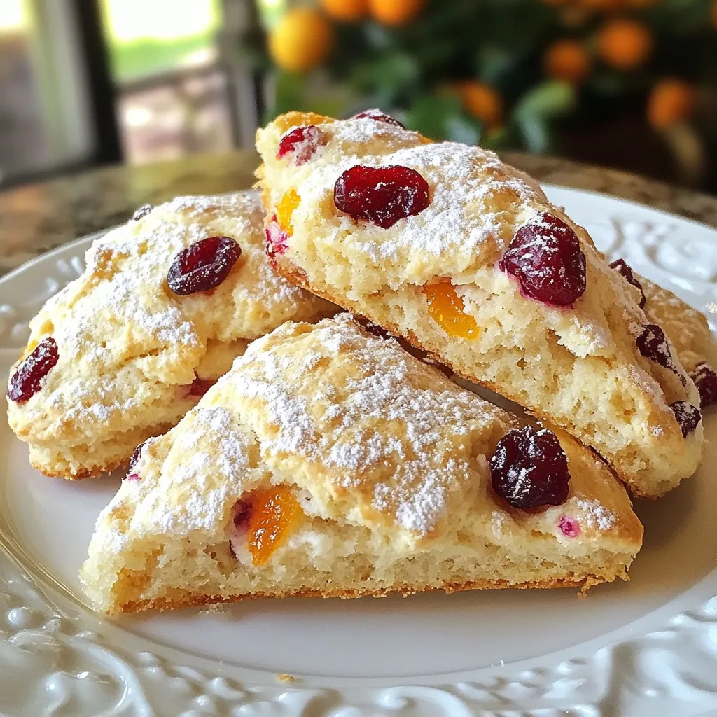 Delicious scones infused with cranberry and orange zest, perfect for breakfast or a snack.