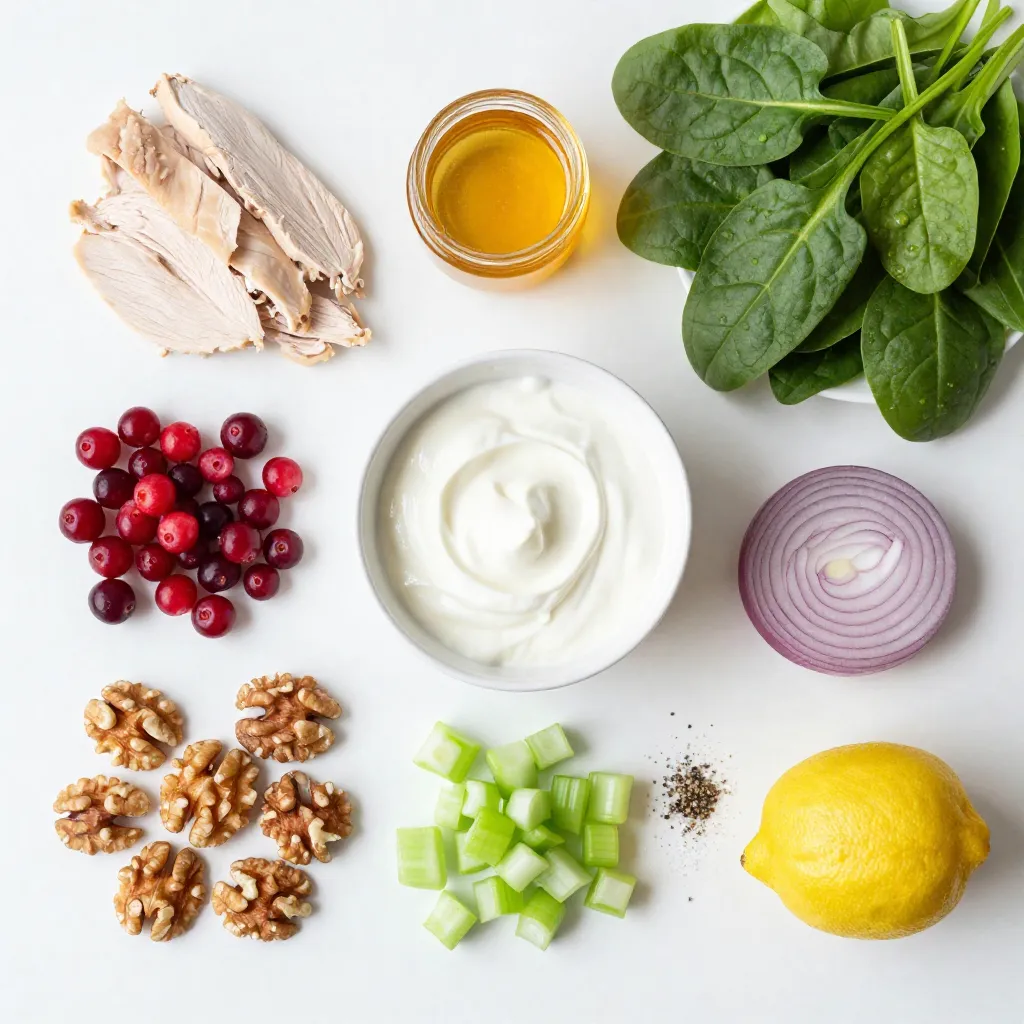 For this cranberry walnut chicken salad, cooked chicken is key. It adds protein and texture. You can use rotisserie chicken for ease. Fresh or dried cranberries bring sweetness and a pop of color. Walnuts add crunch and healthy fats. Celery gives a nice crunch, while red onion adds a mild bite.