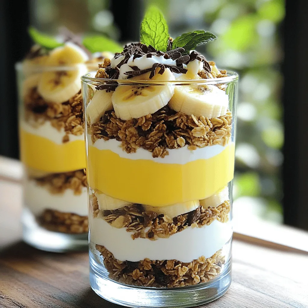 To make this creamy banana dessert, you’ll need some simple yet tasty ingredients. Here’s what you’ll gather: - 2 ripe bananas, sliced - 1 cup Greek yogurt (vanilla or plain) - 1/2 cup coconut cream - 2 tablespoons honey or maple syrup - 1 teaspoon vanilla extract - 1/4 teaspoon ground cinnamon - 1/2 cup granola - 1/4 cup dark chocolate shavings (optional) - Fresh mint leaves for garnish These ingredients create a smooth and sweet treat. You can adjust the honey or maple syrup based on how sweet you like it. I love using ripe bananas because they add natural sweetness. The Greek yogurt and coconut cream make the dessert creamy and rich. Feel free to get creative! You can use different types of granola or even add some nuts for extra crunch. Remember, the key to a great creamy banana dessert is having fun with the flavors. For the full recipe, check out the details above and start creating your own delicious treat! - Step 1: Mix the creamy base Start by grabbing a medium bowl. Add the Greek yogurt and coconut cream. Pour in the honey or maple syrup, then the vanilla extract. Sprinkle in the ground cinnamon. Mix until it is smooth and creamy. This base is what makes your dessert rich and tasty. - Step 2: Layer the ingredients in serving glasses Take your serving glasses or bowls. Put a spoonful of the creamy mix at the bottom. This is your first layer. Next, add a layer of sliced bananas. The bananas give a nice, sweet flavor. Then, sprinkle some granola on top for a crunchy bite. - Step 3: Repeat layers until filled Keep layering! Add more of the creamy mix, followed by more bananas and granola. You can do this 2 to 3 times. Make sure the top layer is the creamy mix. This makes it look nice and inviting. - Step 4: Garnish before serving To finish, sprinkle dark chocolate shavings on top if you like. Add a fresh mint leaf for a pop of color. This makes your dessert look fancy. You can serve it right away or chill it in the fridge for up to an hour. This helps the flavors mix even better. Feel free to check the Full Recipe for more details and tips. Enjoy your creamy banana dessert! - Use ripe bananas for maximum sweetness Ripe bananas have more natural sugar. They taste sweeter and creamier. Look for bananas with brown spots. This shows they are ripe and ready to use. - Opt for full-fat coconut cream for creaminess Full-fat coconut cream gives your dessert a rich texture. It adds a lovely creaminess that blends well with the other ingredients. You can find it in cans at most stores. - Adjust sweetness to taste Everyone has different preferences for sweetness. Start with two tablespoons of honey or maple syrup. Taste the mixture and add more if you like it sweeter. This way, you can make it just right for you. These tips will help you make the best creamy banana dessert. Enjoy the process and get creative! {{image_2}} You can make this creamy banana dessert even more fun with a few twists. Here are some ideas: - Substitute Greek yogurt with dairy-free alternatives: If you want a dairy-free option, use coconut yogurt or almond yogurt. These options keep the texture creamy and add a nice flavor. - Add nuts for extra crunch: Chopped walnuts or almonds can make the dessert crunchy. Just sprinkle them between layers. They also add healthy fats and protein. - Explore different flavorings: Want to change the flavor? Try mixing in peanut butter or almond butter into the yogurt. This adds a rich taste and pairs well with bananas. These variations can make your creamy banana dessert unique, and you can enjoy it in new ways. For the full recipe, check out the Banana Bliss Parfait. To keep your creamy banana dessert fresh, store any leftovers in an airtight container. This helps prevent the dessert from drying out. If you have made the Banana Bliss Parfait, place it in the fridge right away. It will stay fresh for up to three days. If you want to freeze the components, freeze the sliced bananas separately. Use a freezer bag to avoid freezer burn. You can freeze the creamy mixture, too. Just make sure to leave some space in the container for expansion. Thaw it in the fridge before serving. These storage tips ensure every bite tastes great, even days later. Enjoy your dessert anytime! Can I make this dessert ahead of time? Yes, you can make this dessert ahead. Just prepare it and chill in the fridge. It keeps well for up to one hour. If you want to make it a day before, store the layers separately. This helps keep the granola crunchy. How do I ripen bananas quickly? To ripen bananas fast, place them in a paper bag. Close the bag loosely and leave it at room temperature. The ethylene gas will speed up the ripening. You can also use an oven. Bake unpeeled bananas at 300°F for about 15-20 minutes. Watch them closely, as they can get too soft. What can I use instead of granola? If you don’t have granola, try crushed nuts or seeds. You can also use cookie crumbles or crushed cereal. These options add crunch and flavor. Just make sure to pick something you love! For a healthier twist, use toasted oats or puffed rice. For the full recipe, you can refer to the Banana Bliss Parfait. You learned how to make a tasty creamy banana dessert. We covered the ingredients, instructions, and ways to add your own twist. Remember to use ripe bananas for the best flavor and creaminess. You can also play with different toppings and storage methods. This dish is easy to prepare and a great treat for any occasion. Enjoy making it your own and sharing it with friends and family!
