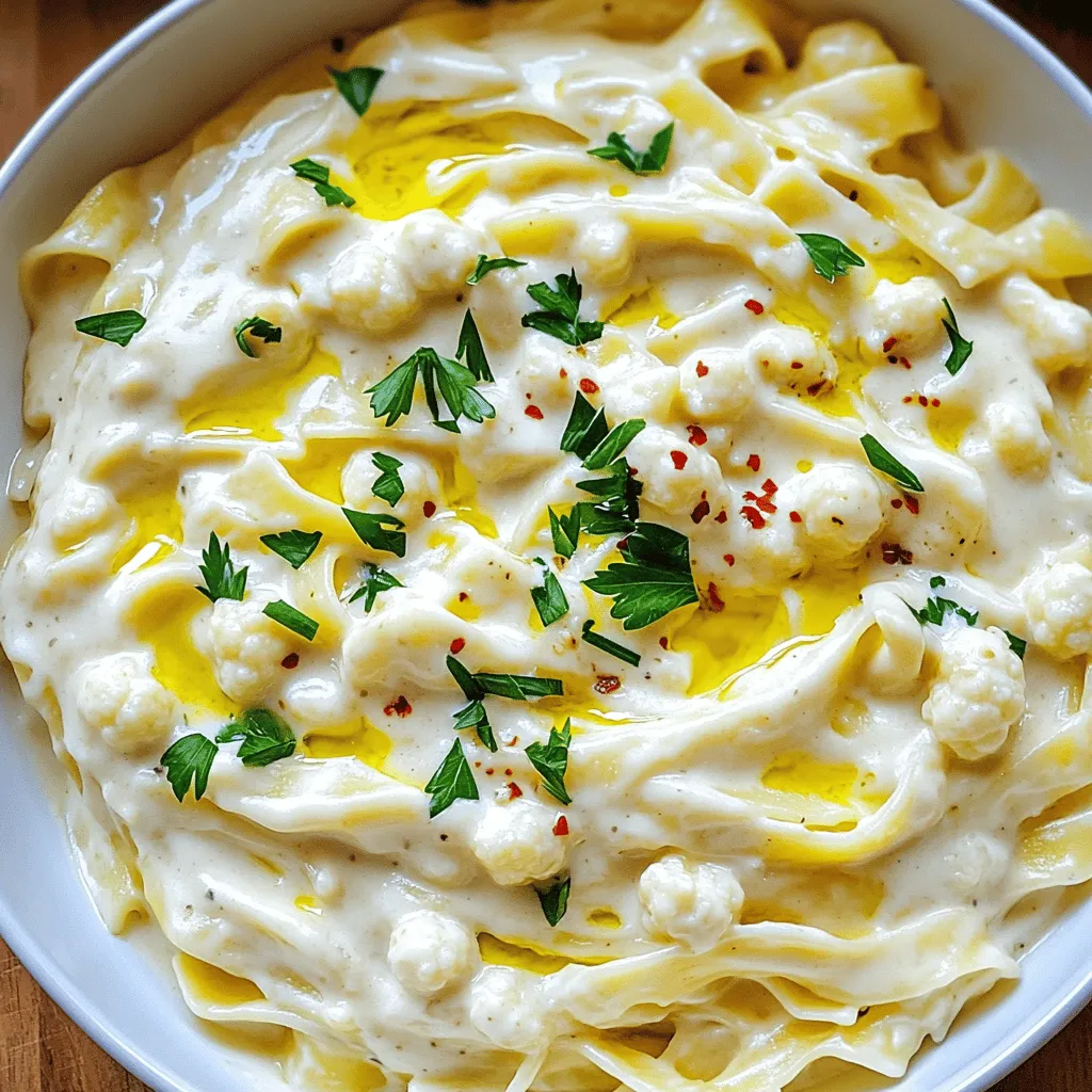 Nutritional yeast is vital for flavor. It adds a cheesy, nutty taste to the sauce. This ingredient makes your creamy cauliflower Alfredo rich and satisfying. You can find it in most grocery stores or online.