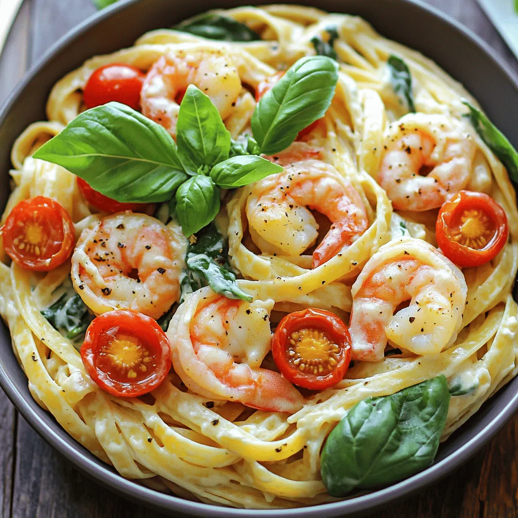 To whip up this creamy mozzarella shrimp pasta, you'll need a few key items. Here’s what you should gather: - 8 ounces fettuccine or linguine pasta - 1 pound large shrimp, peeled and deveined - 2 tablespoons olive oil - 3 cloves garlic, minced - 1 teaspoon red pepper flakes (adjust for spice level) - 1 cup heavy cream - 1 cup shredded mozzarella cheese - 1/2 cup grated Parmesan cheese - 1 cup cherry tomatoes, halved - 1 cup fresh spinach leaves - Salt and pepper to taste - Fresh basil, for garnish These ingredients create a rich, creamy sauce that hugs the pasta perfectly. I love using fettuccine or linguine for their ability to hold sauces well. The large shrimp add a nice bite, and the garlic brings out great flavor. Fresh cherry tomatoes and spinach not only add color but also offer a fresh taste. The combination of mozzarella and Parmesan gives the sauce its creaminess and richness. You can find these ingredients at any grocery store or farmer's market. For the full recipe, check out the complete guide to make this delightful dish. To cook the pasta, boil a large pot of salted water. Add the fettuccine or linguine. Cook until it is al dente, about 8-10 minutes. Drain the pasta, but save 1/2 cup of the pasta water. This water is helpful later for the sauce. Heat olive oil in a large skillet over medium heat. Add the shrimp and season them with salt, pepper, and red pepper flakes. Cook the shrimp for 2-3 minutes on each side. They should turn pink and opaque. Be careful not to overcook them, or they will be tough. Remove the shrimp from the skillet and set them aside. In the same skillet, add minced garlic and sauté for about 30 seconds. Then, pour in the heavy cream and stir well. Gradually mix in the shredded mozzarella and Parmesan cheese. Stir until everything melts together and becomes creamy. If you want a thicker sauce, you can simmer it a bit longer. Add the halved cherry tomatoes and fresh spinach to the sauce. Cook for 2-3 minutes until the spinach wilts. If the sauce is too thick, add some of the reserved pasta water to adjust the consistency. Finally, add the drained pasta and cooked shrimp to the skillet. Toss everything together to coat in the creamy sauce. Adjust the seasonings with salt and pepper if needed. Serve in bowls and enjoy this delicious meal. For the complete recipe, check out the Full Recipe. To make a rich and creamy sauce, start on medium heat. This helps keep the cream smooth. If your sauce separates, it’s likely too hot. Lower the heat and stir well. For extra creaminess, add cheese slowly. This helps it melt evenly. Use a good non-stick skillet. This prevents the sauce from sticking. A silicone spatula is great for mixing. It ensures you get every bit of flavor. Herbs and spices make your dish shine. Fresh basil adds a bright taste. You can also try oregano or thyme for a twist. A pinch of lemon zest can brighten the flavors too. Pair this pasta with a simple salad. A fresh green salad with vinaigrette works well. Garlic bread is another tasty side. It adds crunch and complements the creamy sauce. For more tips, check out the Full Recipe. {{image_2}} You can easily adapt this recipe to fit your diet. If you need gluten-free options, use gluten-free pasta. Many brands make good pasta that cooks well. For those who avoid dairy, you can swap heavy cream with plant-based cream. Coconut cream or cashew cream works great. These options keep the dish creamy while meeting your needs. Want to boost flavor and nutrition? Adding veggies is a great way to do this. Spinach adds color and nutrients, while cherry tomatoes bring sweetness. You can also toss in mushrooms, bell peppers, or zucchini for more texture. If you want extra protein, try adding chicken or scallops. As for serving, think outside the bowl! You can layer pasta on a plate for a fancy look. Or, serve it in a large dish for sharing. A sprinkle of fresh herbs on top makes a beautiful touch. Check out the full recipe for more ideas! To keep your creamy mozzarella shrimp pasta fresh, start by storing leftovers in an airtight container. Place the container in the fridge. This method keeps the dish safe to eat for about 3 to 4 days. For longer shelf life, you can freeze the pasta. To do this, allow the dish to cool completely. Then, transfer it to a freezer-safe bag or container. This can last for up to 2 months in the freezer. When ready to eat, it’s best to thaw it overnight in the fridge before reheating. Reheating creamy pasta can be tricky. To do it right, use a skillet over low heat. Add a splash of water or cream to help bring back the sauce’s creaminess. Stir gently as you heat it up. Avoid using high heat, as this can overcook the pasta and dry it out. If you need to use a microwave, heat in short bursts, stirring in between to ensure even warming. This way, you can enjoy your creamy mozzarella shrimp pasta just as much as the first time! How can I make this dish spicier? To add heat, increase red pepper flakes. You can also use diced jalapeños or a splash of hot sauce. Try adjusting the spice to match your taste. Just remember to add a little at a time. This helps you control the heat level. Can I substitute another type of cheese? Yes, you can use provolone or gouda if you prefer. Both melt well and add great flavor. Experiment with different cheeses to find your favorite combination. Mixing mozzarella with a sharper cheese can also enhance taste. What can I serve alongside this pasta dish? A fresh garden salad pairs well for a bright contrast. Garlic bread also makes a great side. If you want something warm, roasted vegetables would complement the creamy pasta nicely. How long will leftovers last in the fridge? Leftovers can last up to three days in the fridge. Make sure to store them in an airtight container. When ready to eat, reheat gently on the stove to keep the sauce creamy. For exact instructions, refer to the Full Recipe. This blog post covered how to make creamy mozzarella sh