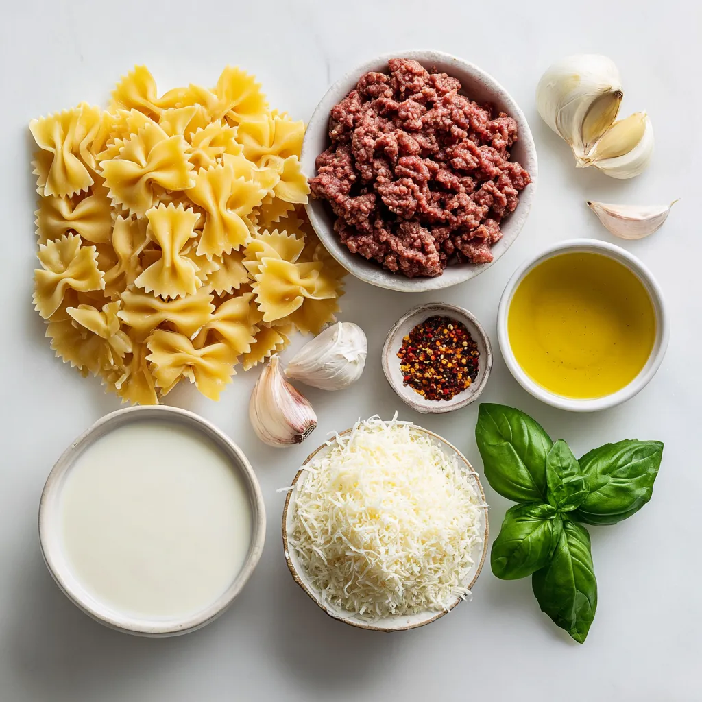 Each ingredient plays a key role. The bowtie pasta is fun and holds the sauce well. Ground beef adds protein and flavor. Garlic and onion give depth to the dish. Cream and cheese create that rich, creamy sauce we love. Seasonings like Italian seasoning and red pepper flakes bring warmth. Finally, fresh basil adds a bright touch.