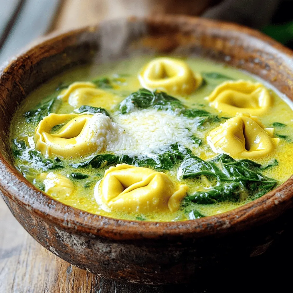 This soup shines with the rich flavor of cheese tortellini and the freshness of spinach. The creamy base makes it comforting and delicious. Don’t forget the Parmesan cheese! It adds a nice touch at the end. If you want a kick, toss in the red pepper flakes. You can also mix and match with different tortellini or creams. Gather these ingredients, and you are ready to cook!