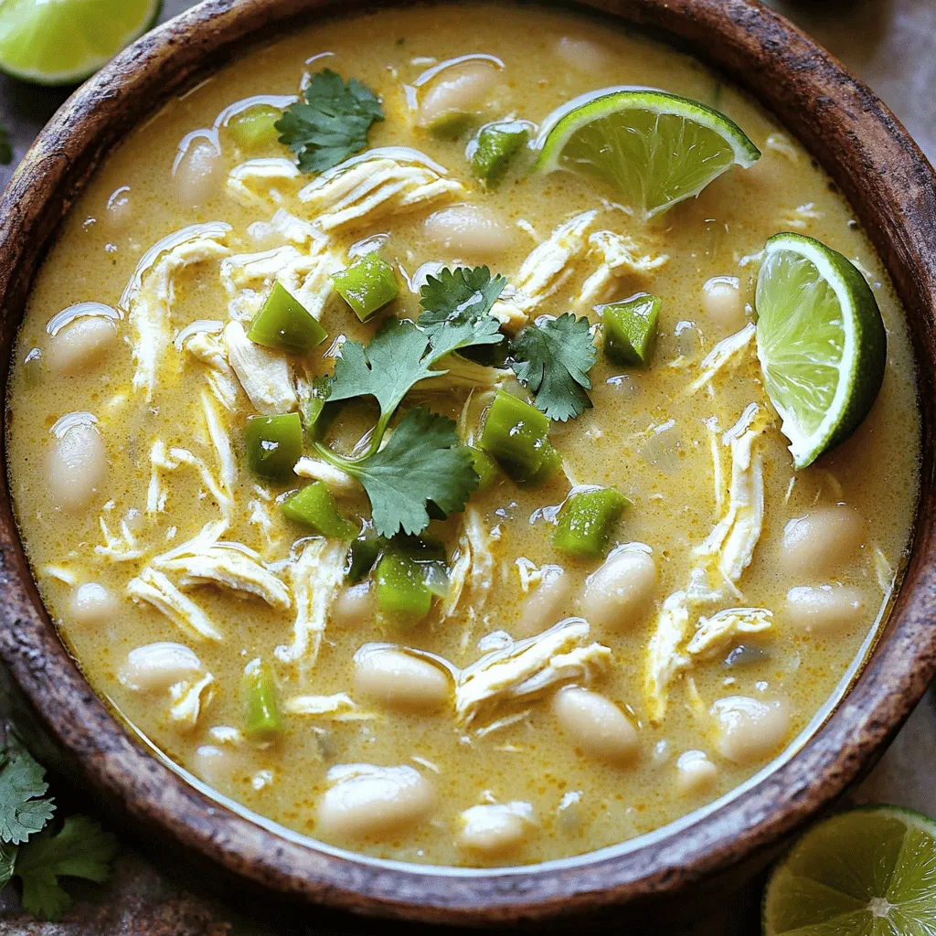 ![When I make Creamy White Chicken Chili, I use these fresh and simple ingredients: - 2 tablespoons olive oil - 1 medium onion, diced - 3 cloves garlic, minced - 1 pound cooked chicken breast, shredded - 2 cans (15 oz each) white beans (cannellini or great northern), drained and rinsed - 1 can (4 oz) diced green chiles (mild or hot, based on preference) - 4 cups chicken broth - 1 teaspoon ground cumin - 1 teaspoon chili powder - 1 teaspoon smoked paprika - 1/2 teaspoon cayenne pepper (adjust based on heat preference) - 1 cup heavy cream - Salt and pepper to taste - Fresh cilantro, chopped (for garnish) - Lime wedges (for serving) These ingredients blend to create a warm and hearty meal. If you need alternatives, here are some great swaps: - Olive oil: You can use canola or avocado oil. - Chicken: Rotisserie chicken works well if you lack time. - White beans: You can use navy beans or chickpeas for a twist. - Chicken broth: Vegetable broth is a good option for a lighter taste. - Heavy cream: Substitute with coconut milk for a dairy-free choice. These swaps keep the dish tasty while fitting your needs. Choosing the right brands can enhance your chili. Here are my favorites: - Olive oil: Look for extra virgin for the best flavor. - Canned beans: Eden Organic has great quality. - Diced green chiles: Las Palmas offers a nice balance of heat. - Chicken broth: Swanson's Natural Goodness is rich and flavorful. Using trusted brands helps ensure a top-notch dish. For the full recipe, check the recipe section! First, gather all your ingredients. This makes cooking easy and fun. You need olive oil, onion, garlic, cooked chicken breast, white beans, diced green chiles, chicken broth, and spices. Don't forget the heavy cream for that rich texture! 1. Heat the Oil: Start by heating the olive oil in a large pot over medium heat. 2. Sauté the Onion: Add the diced onion. Cook it until it turns soft, about 5 minutes. 3. Add Garlic: Stir in the minced garlic and let it cook for one more minute. This brings out the wonderful aroma. 4. Mix in Chicken and Beans: Now, add the shredded chicken, white beans, diced green chiles, and chicken broth to the pot. 5. Season It Up: Sprinkle in the ground cumin, chili powder, smoked paprika, cayenne pepper, salt, and pepper. Mix everything well and let it simmer gently. 6. Simmer for Flavor: Reduce the heat to low. Let your chili simmer for about 20 minutes. Stir it occasionally to keep it from sticking. 7. Add Cream: Slowly pour in the heavy cream. Stir until it blends well. Cook for another 5 minutes, but do not let it boil. 8. Taste and Adjust: Now, taste your chili. If it needs more flavor, add salt, pepper, or spices based on how you like it. Once your chili is ready, remove it from the heat. Serve it hot in bowls. Garnish with fresh cilantro on top. Lime wedges on the side add a nice burst of flavor when squeezed over. Enjoy this creamy white chicken chili with family or friends! For a detailed guide, check the Full Recipe. To get that smooth, creamy texture, use heavy cream. It blends well and adds richness. Stir it in slowly at the end of cooking. This helps avoid boiling, which can curdle the cream. If you want a lighter option, you can use half-and-half. But remember, it won’t be as thick. To boost flavor, add fresh lime juice just before serving. It adds brightness that makes each bite pop. You can also toss in some fresh cilantro for a herby touch. If you like heat, try adding more cayenne pepper or a dash of hot sauce. Smoked paprika gives a nice depth, so don’t skip it! One common mistake is not seasoning enough. Always taste your chili before serving. Adjust with salt, pepper, or spices as needed. Another mistake is cooking on high heat after adding cream. This can ruin the texture. Keep it low and slow. Lastly, don’t forget to drain and rinse the beans. This helps remove excess sodium and improves flavor. For the full recipe, check below. {{image_2}} You can easily adjust the heat in your creamy white chicken chili. Start with mild diced green chiles. If you like more heat, use hot chiles instead. You can also add cayenne pepper in small amounts. Taste as you go. This way, you can find the heat level that suits you best. For a vegetarian version, skip the chicken and use more beans. You can add corn and bell peppers for extra flavor and texture. Swap the heavy cream for coconut milk or a cashew cream. This keeps the dish creamy and rich without using animal products. If you want to switch proteins, ground turkey is a great choice. It cooks quickly and has a mild taste. Ground beef can also work, but it will change the flavor profile. You can brown it first to add depth. Just remember, cook it fully before adding it to your chili. Check out the full recipe to see how easy it is to make these changes! Store any leftover creamy white chicken chili in an airtight container. Let it cool to room temperature before sealing. Proper storage keeps the chili fresh for about three to four days in the fridge. Label the container with the date. This helps you track how long it has been stored. When you’re ready to enjoy your chili again, reheat it on the stove or in the microwave. If using the stove, pour the chili into a pot and heat over medium-low. Stir it often to prevent sticking. For the microwave, place your chili in a safe bowl. Heat in short intervals, stirring in between, until warm. Add a splash of broth or cream if it seems too thick. You can freeze creamy white chicken chili for up to three months. Use freezer-safe containers or bags. Leave some space at the top of the container, as the chili may expand when it freezes. Thaw it overnight in the fridge before reheating. This keeps the flavors intact, making it just as delicious as the first serving. Check the [Full Recipe] for more tips on how to make this dish shine! To make this chili vegetarian, swap the chicken for a plant-based protein. You can use chickpeas or tofu for texture. Replace chicken