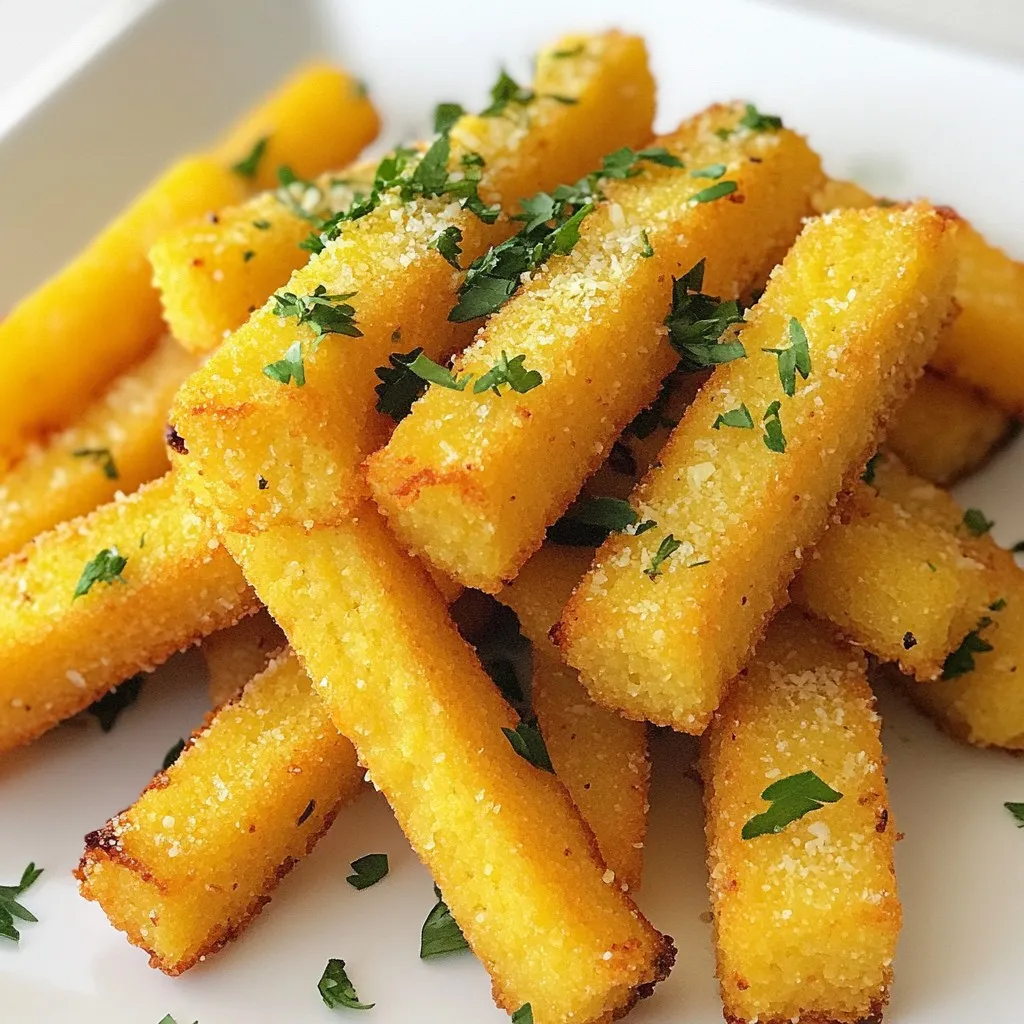 Deliciously crispy fries made from polenta and topped with Parmesan cheese.