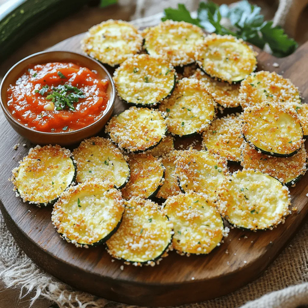 ![- 2 medium zucchinis - 1 cup grated Parmesan cheese - 1 cup breadcrumbs - 2 large eggs - Olive oil spray - 1 teaspoon garlic powder - 1 teaspoon onion powder - 1 teaspoon dried oregano - Salt and pepper to taste - Fresh parsley - Marinara sauce or garlic aioli To make crispy Parmesan zucchini chips, start with the best ingredients. Zucchini is the star. Choose firm, fresh zucchinis for the best texture. Grated Parmesan cheese adds a sharp, salty flavor that makes these chips irresistible. I like to use Panko breadcrumbs because they create extra crunch. Seasonings bring life to the dish. Garlic powder adds depth, while onion powder gives a sweet touch. Dried oregano adds an earthy flavor that rounds out the mix. Don’t forget salt and pepper. They enhance all the flavors. For a lovely finish, consider optional garnishes. Fresh parsley adds color and brightness. Marinara sauce or garlic aioli makes great dips. These extra touches elevate your crispy zucchini chips, making them a true delight. For the complete cooking instructions, check out the Full Recipe. - Preheat the oven to 425°F (220°C). - Slice zucchini into thin rounds. Start by heating your oven. This helps the zucchini chips become nice and crispy. Use a sharp knife to cut the zucchini. Aim for thin, even slices. This ensures they cook well and get crunchy. - Mix Parmesan cheese, breadcrumbs, and seasonings. - Dip zucchini slices in beaten eggs. In a bowl, combine the grated Parmesan, breadcrumbs, and spices. This mix gives the chips great flavor. In another bowl, beat the eggs. Grab a zucchini slice, dip it in the eggs, then coat it in the cheese and breadcrumb mix. Press gently to make sure it sticks well. - Arrange coated slices on a baking sheet. - Bake for 20-25 minutes, flipping halfway. Lay the coated slices on a baking sheet. Spread them out so they don’t touch. This helps them cook evenly. Bake in the hot oven for 20 to 25 minutes. Flip them halfway through for even crispiness. When they are golden brown, they are ready to enjoy. For the full recipe, check the details above. To achieve the best crunch in your crispy Parmesan zucchini chips, follow these tips: - Use Panko breadcrumbs: Panko adds extra crunch and lightness compared to regular breadcrumbs. - Spray with olive oil: A light spray helps the chips crisp up beautifully during baking. To elevate the flavor of your zucchini chips, consider these additions: - Add crushed red pepper for spice: A pinch of crushed red pepper gives your chips a nice kick. - Experiment with different herbs: Feel free to try herbs like thyme or basil to change things up. Serving your crispy zucchini chips can be fun and creative: - Pair with dips like marinara sauce: Marinara complements the cheese and adds a tasty twist. - Garnish with fresh herbs: Chopped parsley or basil adds color and a fresh taste. For a full recipe, check out the [Full Recipe]. {{image_2}} You can switch up the cheese in this recipe. Try using cheddar for a sharp taste. You can also use mozzarella for a milder flavor. If you want to change the main veggie, use eggplant or yellow squash instead. These options add unique flavors and textures. For a quicker cooking time, use an air fryer. It gives you crispy chips in less time. Simply follow the same coating process and air fry them for about 10-15 minutes. If you want a different texture, try pan-frying. Heat some olive oil in a skillet and fry the coated zucchini until golden. This method adds a nice crunch and flavor. You can make these chips even more fun by adding seasonal spices. In fall, sprinkle in some pumpkin spice for a warm flavor. During summer, use fresh herbs like basil or thyme. These herbs enhance the taste and pair nicely with the zucchini. Keep your crispy zucchini chips in an airtight container. They stay fresh in the fridge for up to 3 days. This helps maintain their flavor and crunch. You can freeze your zucchini chips for later use. Freeze them uncooked or cooked. If you freeze them uncooked, they will keep their texture better when baked later. To reheat, use your oven. This method keeps the chips crispy and delicious. Set your oven to 350°F (175°C) and bake for about 10 minutes. Avoid microwaving your chips. Microwaving can make them soggy. You want that perfect crunch! For the full recipe, check out the Crispy Parmesan Zucchini Chips section above. To make your zucchini chips crispy, start by removing moisture. - Slice thinly: Cut zucchini into thin rounds for even cooking. - Salt them: Sprinkle salt on slices and let them sit for 15-20 minutes. This helps draw out moisture. - Dry thoroughly: Pat the slices dry with paper towels. Moisture leads to soggy chips. - Use Panko: Panko breadcrumbs give extra crunch. - Avoid overcrowding: Spread them out on the baking sheet. Chips need space to crisp up. - Spray with oil: Lightly spray the tops with olive oil before baking. Yes! You can use many vegetables instead of zucchini. Try these: - Eggplant: It has a similar texture. - Sweet potatoes: They add a sweet flavor. - Carrots: These become sweet and crunchy. - Kale: For a green chip, bake kale leaves. Experiment with your favorites to find new flavors! Dipping sauces can boost flavor. Here are some tasty pairings: - Marinara sauce: Great for a classic combo. - Garlic aioli: Creamy and rich, it adds depth. - Ranch dressing: A fun, tangy option. - Spicy salsa: For a fresh kick. You can also try hummus for a healthy spin! This blog gave you a detailed guide on making crispy zucchini chips. Starting with simple ingredients like zucchini and Parmesan, the steps are easy to follow. You learned tips for achieving the best crunch and storing them well. Feel free to explore variations with different veggies or flavors. These chips are tasty and fun to share. Enjoy your cooking adventure and impress others with your crunchy treats!](https://lisadishes.com/wp-content/uploads/2025/06/bbe23583-c842-4162-84c1-c7b531d353a7-768x768.webp)