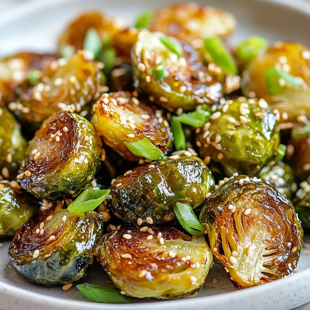 A delicious and crispy side dish featuring Brussels sprouts with a savory sesame ginger flavor.
