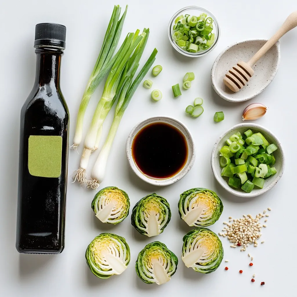 Brussels sprouts are the star of this dish. Choose fresh, bright green sprouts. Their flavor shines when roasted. The olive oil and sesame oil add richness. Soy sauce gives that salty umami kick. Ginger and garlic bring warmth and zest. Honey or maple syrup adds sweetness, balancing the flavors. Red pepper flakes can add a spicy touch if you like heat. Finally, sesame seeds and green onions make for a pretty finish.