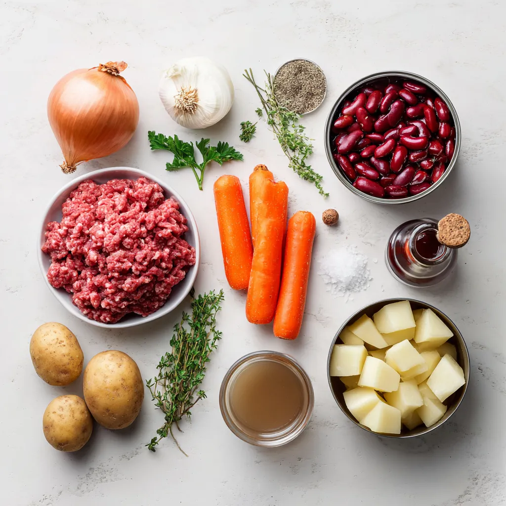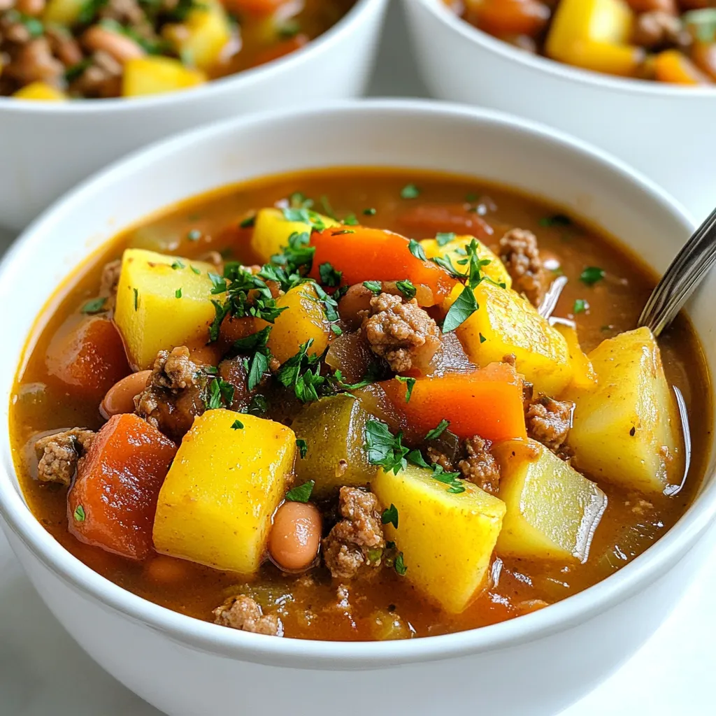 A hearty and comforting stew made with ground beef, vegetables, and beans, perfect for a cozy meal.