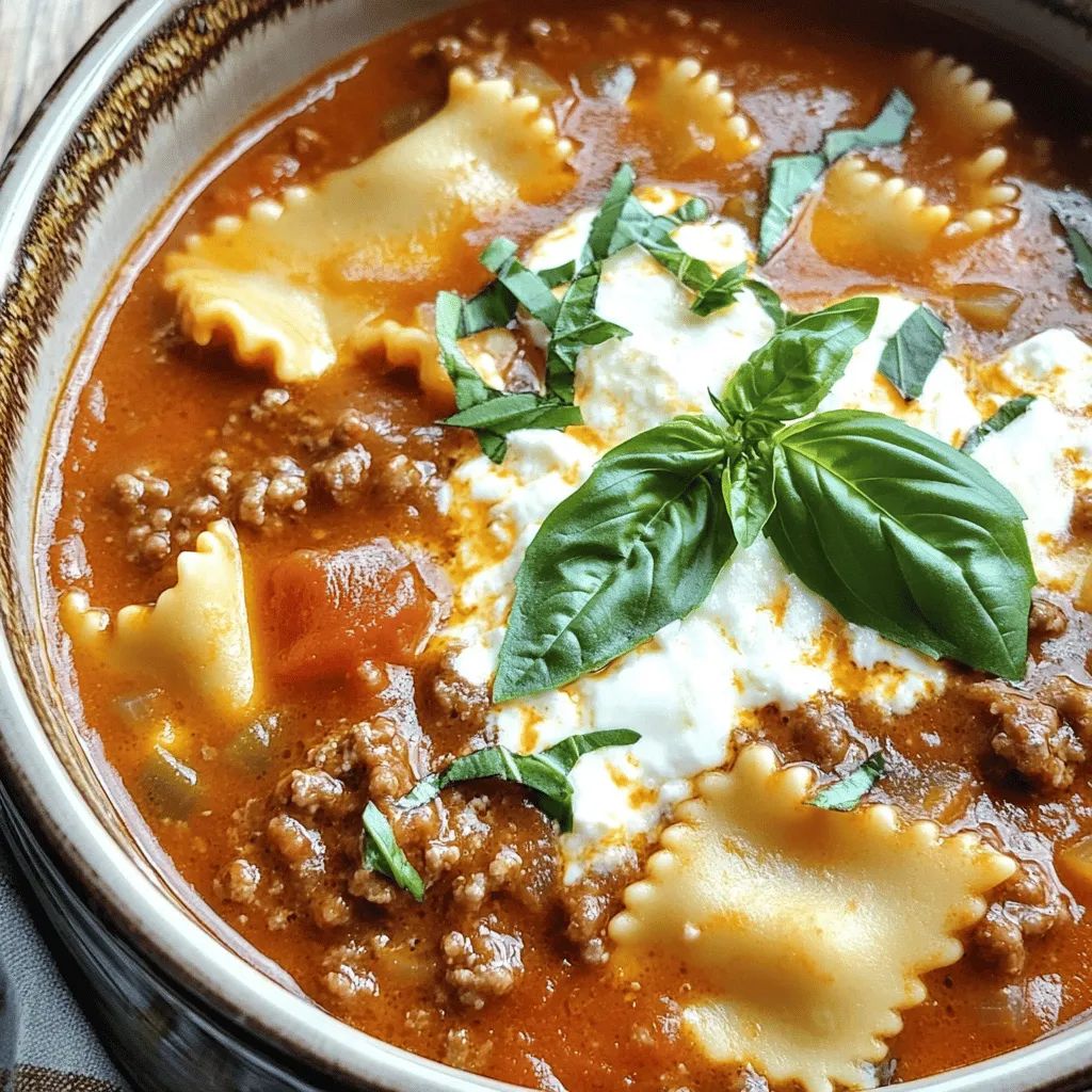 Cook the lasagna noodles right in the soup. Break them into smaller pieces. Stir them in about 30 minutes before serving to soften. For creamy texture, mix the ricotta well. You can add it directly to the soup or serve it on top.