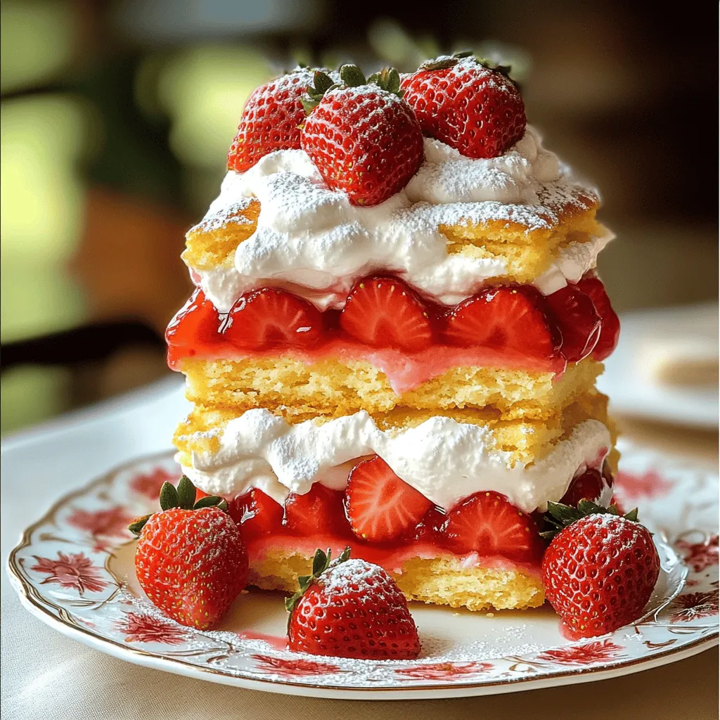 . To macerate strawberries effectively, start by hulling and slicing them. Add 2 tablespoons of sugar to the strawberries in a bowl. Toss them gently, then let them sit for at least 30 minutes. This process draws out the juices, making the strawberries sweet and syrupy. When selecting strawberries, look for bright red ones that are firm and plump. Avoid any with white or green spots. Fresh strawberries should have a sweet aroma. Choose organic if possible for better flavor and fewer chemicals. To achieve a light and fluffy texture, focus on using cold butter. Cut it into the flour until it resembles coarse crumbs. This helps create layers in the shortcake. Do not overmix the dough when combining ingredients. Stir just until everything comes together. Overmixing can make the shortcakes tough. A gentle touch is key here. To serve strawberry shortcake, slice the shortcakes in half and layer them with macerated strawberries. Add a generous dollop of whipped cream on top. For a beautiful presentation, use a dessert plate. Dust the shortcake with powdered sugar and add a few whole strawberries around it. This adds color and makes it look fancy. You can also drizzle some chocolate sauce for extra flair. {{image_2}} You can change the fruit in this shortcake. Try using blueberries or raspberries. These berries add a new taste and color. You can also use seasonal fruits. Peaches or cherries work well in summer. Apples or pears are great in fall. Mixing fruits can make your dessert fun and fresh. If you need a gluten-free option, use almond flour or a gluten-free mix. This way, everyone can enjoy the treat. You can also add flavors to your shortcake. Try lemon zest for a bright taste or a hint of almond for a nutty twist. These small changes can make a big difference. Toppings can change your shortcake too. Instead of whipped cream, try chocolate or caramel sauce. These toppings add sweetness and richness. You can also mix whipped cream with flavors. Add cocoa powder or a splash of coffee for a unique taste. Get creative and make it your own! To store leftover shortcakes, wrap them in plastic wrap. Place them in an airtight container. This keeps them fresh for up to three days. Avoid stacking them to prevent crushing. You can also freeze them for longer storage. Just place wrapped shortcakes in a freezer-safe bag. They will last for about three months this way. When you are ready to enjoy them, thaw at room temperature. For macerated strawberries, store them in the fridge. Use a covered bowl to keep them fresh. They are best eaten within two days for optimal flavor. To keep strawberries fresh longer, do not wash them until ready to eat. Store unwashed strawberries in the fridge in their original container. This prevents excess moisture that can cause mold. If you have extra strawberries, freeze them for later use. To reheat shortcakes, use the oven. Preheat it to 350°F (175°C). Place the shortcakes on a baking sheet and warm for about 10 minutes. This method helps keep their texture crisp. You can also use a microwave, but be careful. Heat them in short bursts to avoid sogginess. For best results, cover them with a damp paper towel while reheating. This keeps the moisture in and preserves flavor. Yes, you can make strawberry shortcake ahead of time. Prepare the shortcake and strawberries separately. Store the shortcake in an airtight container at room temperature. The strawberries can stay in the fridge after they macerate. Assemble the shortcakes just before serving. This keeps the shortcake fresh and fluffy. You have options if you need a substitute for heavy cream. You can use coconut cream for a dairy-free choice. Another option is to mix milk with butter. For a lighter version, use half-and-half or whole milk. These substitutes work well in the recipe, ensuring you still enjoy that creamy texture. To check if your shortcakes are done, look for a golden color on top. They should feel firm yet slightly soft when you press them. You can also insert a toothpick in the center. If it comes out clean, they are ready. These signs help guarantee perfect baking every time. You learned how to make a simple yet delicious strawberry shortcake. From selecting fresh strawberries to baking the perfect shortcake, each step matters. I shared tips for great texture and serving ideas. Remember, variations can add fun twists to your dish. Store leftovers properly for the best taste later. With these methods, you can enjoy this treat whenever you want. Happy baking, and enjoy every bite!](https://lisadishes.com/wp-content/uploads/2025/07/fb63c825-4923-426e-b33a-63617be4e307-768x768.webp)