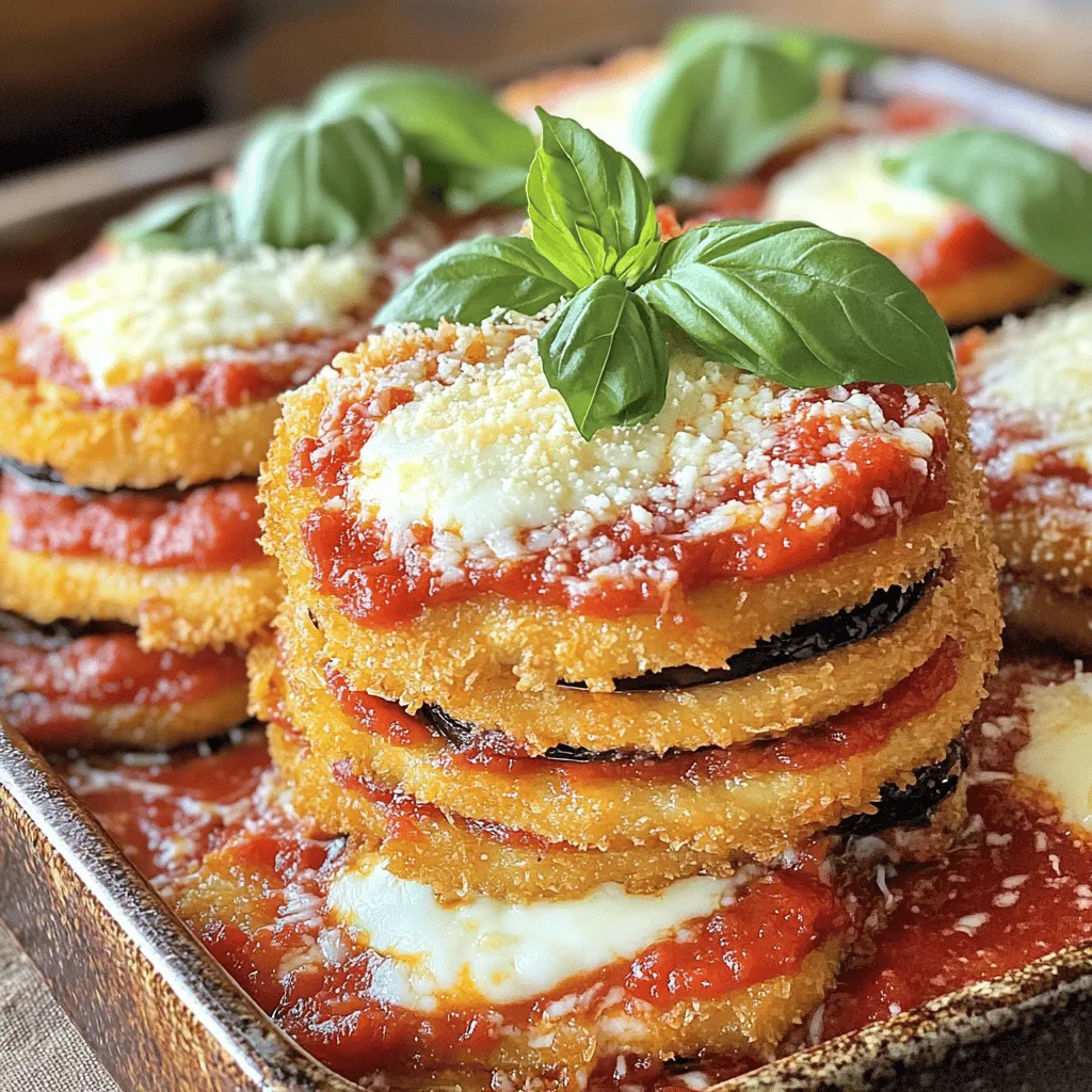 Eggplant Parmesan Stacks can fit many diets. For vegetarians, the dish is already a great choice. You can make it vegan by using cashew cheese or tofu. For gluten-free needs, use gluten-free breadcrumbs. Healthier baking options exist too! Instead of frying, try baking the eggplant slices. This keeps the taste and cuts down on oil. Enjoy guilt-free goodness!