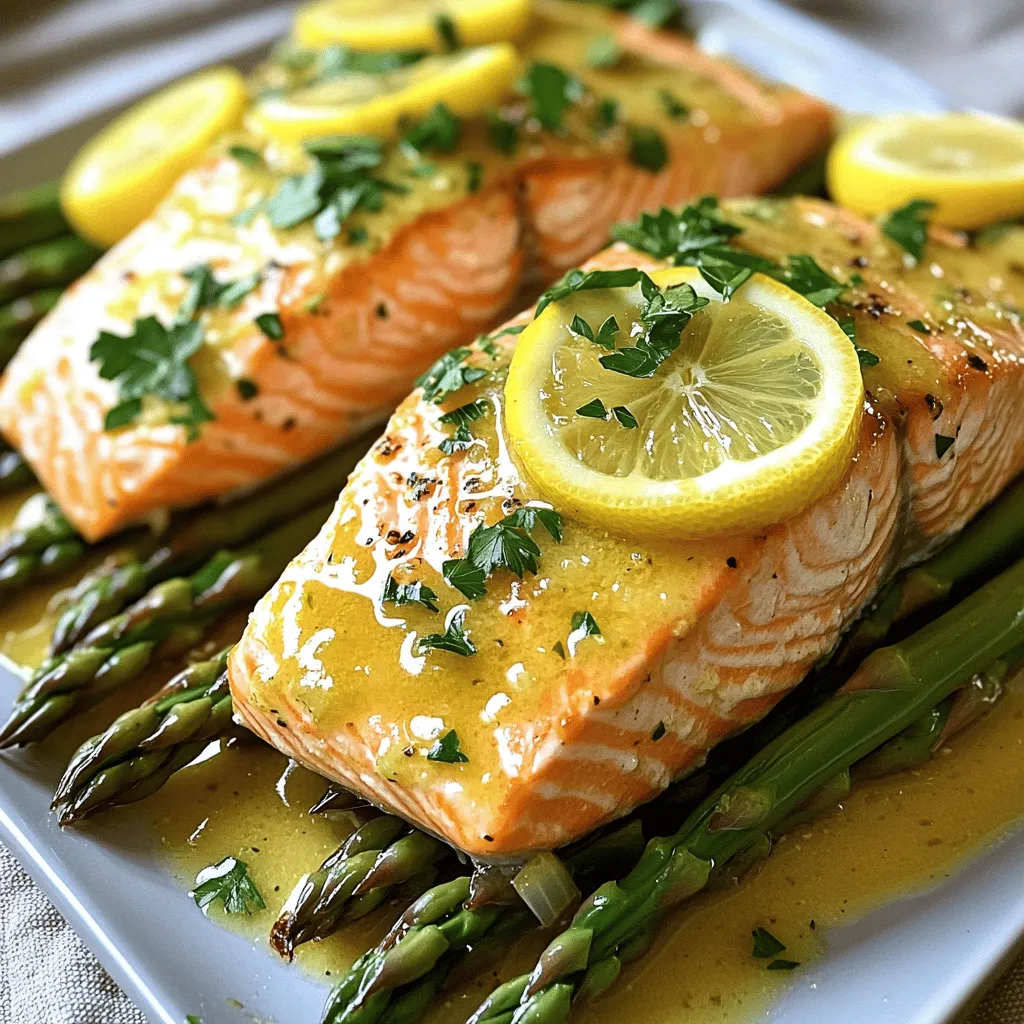 Plating is important for a beautiful dish. Serve the salmon on a bed of bright green asparagus. This adds color and makes the dish pop. For garnish, sprinkle fresh parsley on top. Add lemon slices for a fresh look. Drizzling some extra garlic butter over the salmon makes it shine. For a restaurant-style finish, arrange the salmon with care on the plate. Enjoy your meal!