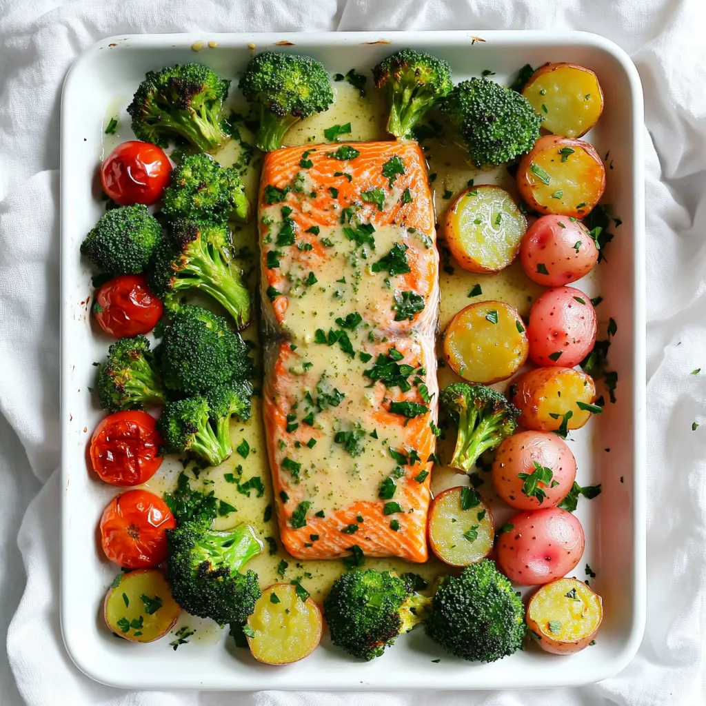 Finally, place the salmon fillets in the center of the pan. Season them with salt and pepper. Return the sheet pan to the oven. Bake for another 12-15 minutes. The salmon should be opaque and flake easily with a fork. The veggies should be tender and bright. Once done, take it out, and sprinkle fresh parsley on top for a nice touch.