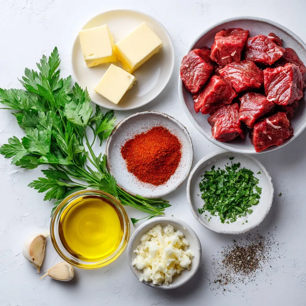 The main star of this dish is the sirloin steak. It is tender and juicy. Cut it into small pieces. This helps it cook fast and stay flavorful. Next, we use unsalted butter. It adds richness and helps the garlic shine. Garlic brings a strong and savory taste. Fresh parsley adds a pop of color and taste. Smoked paprika adds a hint of smokiness. Finally, olive oil helps cook the steak bites to perfection.