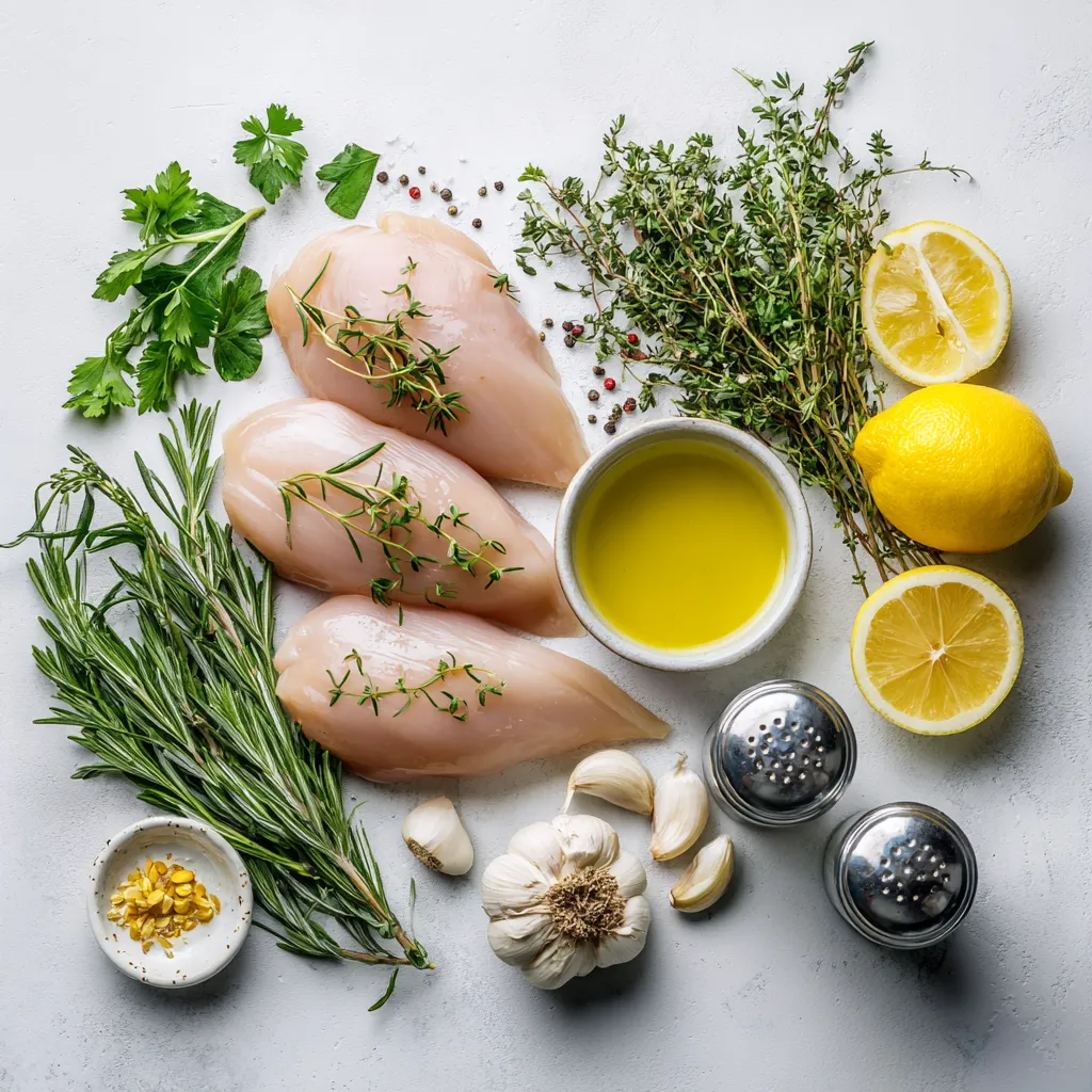 First, gather your ingredients. You need 5 cloves of minced garlic, 2 tablespoons of fresh rosemary, 2 tablespoons of fresh thyme, and 1 tablespoon of fresh parsley. Also, grab 1 teaspoon of lemon zest, 1/4 cup of olive oil, salt, and pepper. In a small bowl, mix all these ingredients well. This mixture becomes the herb marinade. It infuses the chicken with great flavor.