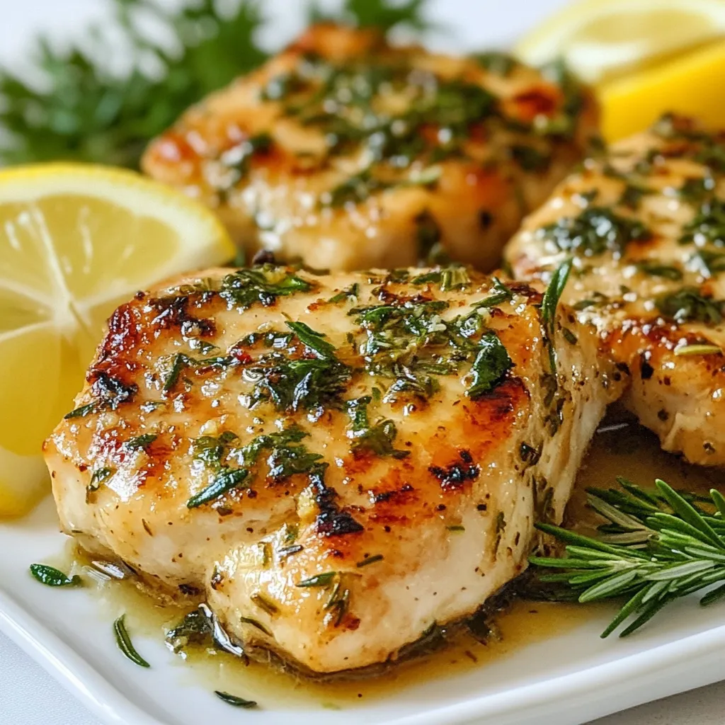 - 4 boneless, skinless chicken breasts - 5 cloves garlic, minced - 2 tablespoons fresh rosemary, finely chopped - 2 tablespoons fresh thyme, finely chopped - 1 tablespoon fresh parsley, chopped - 1 teaspoon lemon zest - 1/4 cup olive oil - Salt and pepper to taste - Optional: lemon wedges for serving {{ingredient_image_1}} First, gather your ingredients. You need 5 cloves of minced garlic, 2 tablespoons of fresh rosemary, 2 tablespoons of fresh thyme, and 1 tablespoon of fresh parsley. Also, grab 1 teaspoon of lemon zest, 1/4 cup of olive oil, salt, and pepper. In a small bowl, mix all these ingredients well. This mixture becomes the herb marinade. It infuses the chicken with great flavor. Next, take the 4 boneless, skinless chicken breasts. Place them in a resealable plastic bag or a shallow dish. Pour the prepared marinade over the chicken. Make sure each piece is coated well. Seal the bag or cover the dish tightly. Now, place it in the fridge. Let the chicken marinate for at least 30 minutes. If you have time, marinate for up to 4 hours. This gives the flavors more time to soak in. When you're ready to cook, preheat your oven to 400°F (200°C). After marinating, take the chicken out of the fridge. Heat a large oven-safe skillet on medium-high heat. Add a splash of olive oil. Sear the chicken breasts for about 3-4 minutes on each side. Look for a nice golden brown color. Then, transfer the skillet to the preheated oven. Bake for 15-20 minutes. Check that the chicken's internal temperature reaches 165°F (75°C). Finally, let the chicken rest for 5 minutes before slicing. This helps keep it juicy. To make the best garlic herb chicken, focus on the marinade. Marinate the chicken for at least 30 minutes. For a deeper flavor, marinate for up to 4 hours. This gives the herbs time to soak into the meat. You can also change the herbs to match your taste. Try using basil or oregano for a different twist. You can sear or bake the chicken. Searing gives a nice brown color and flavor. Start by heating olive oil in a skillet. Sear the chicken for 3-4 minutes on each side. Then, bake it in the oven at 400°F (200°C) for 15-20 minutes. To check if the chicken is done, use a meat thermometer. It should read 165°F (75°C) inside. Serve garlic herb chicken with great side dishes. Roasted vegetables or a fresh salad work well. You can also pair it with rice or pasta. To make it look nice, garnish with fresh herbs and lemon wedges. This adds color and flavor to your plate. Pro Tips Marinating Time: For the best flavor, marinate the chicken for at least 1 hour, but up to 4 hours is ideal to allow the herbs to penetrate the meat. Perfect Searing: Make sure your skillet is hot enough before adding the chicken to achieve a golden-brown crust, which adds flavor and texture. Resting Time: Allow the chicken to rest for 5 minutes after baking; this helps the juices redistribute, making it juicier and more tender when sliced. Serving Suggestions: Pair the garlic herb chicken with seasonal vegetables or a fresh salad for a balanced meal. Lemon wedges add a refreshing zing! {{image_2}} You can switch chicken for turkey or tofu. Turkey has a similar taste and works well with the marinade. Tofu is a great option for a plant-based meal. Just press the tofu to remove extra water. This helps it absorb the flavors better. You can change the herbs and spices to mix it up. Try using basil or oregano for a fresh twist. You can also add chili flakes if you want some heat. This can make the dish more exciting and flavorful. There are several ways to cook this dish. You can grill the chicken for a smoky flavor. Slow cooking is another method that makes the chicken tender. You can also use the stovetop for a quick meal. Each method brings a unique taste to the dish. Enjoy experimenting to find your favorite way! To store leftovers, place them in an airtight container. Make sure to let the chicken cool first. Keep it in the fridge for up to 3 days. If you want to save it longer, freezing is a great option. Wrap the chicken tightly in plastic wrap, then put it in a freezer bag. This helps avoid freezer burn. You can freeze cooked garlic herb chicken for up to 3 months. When reheating, the goal is to keep the chicken moist. You can use the microwave or oven. For the microwave, place the chicken on a plate. Cover it with a damp paper towel. Heat it in short bursts, checking often. For the oven, preheat it to 350°F (175°C). Place the chicken in a baking dish and cover it with foil. Heat for about 15-20 minutes, or until warm. In the fridge, cooked garlic herb chicken lasts about 3 days. If you freeze it, it can stay good for 3 months. Always check for signs of spoilage before eating. If it smells off or has changed color, it’s best to throw it out. I recommend marinating garlic herb chicken for at least 30 minutes. This time allows the chicken to soak in the flavors. If you have more time, let it marinate for up to 4 hours. The longer you marinate, the more flavor you’ll get. Just keep it in the fridge while it soaks. The internal temperature for cooked chicken should reach 165°F (75°C). Using a meat thermometer is key to ensure it's safe to eat. Insert it into the thickest part of the chicken to check. This step helps you avoid undercooked chicken, which can be harmful. Yes, you can easily adjust the recipe for fewer servings. Simply divide the ingredients by the number of servings you need. For example, if you want to make enough for two people, use two chicken breasts and halve the marinade amounts. This way, you maintain the flavor while making just the right amount for your meal. This blog post gives you all you need to make garlic herb chicken. We covered the ingredients, the best ways to marinate, and cooking tips. You learned how to add your touch with herbs and spices. I shared storage tips to keep your chicken fresh and tasty. Remember, don’t rush the marinating process; it makes a big difference. Enjoy creati