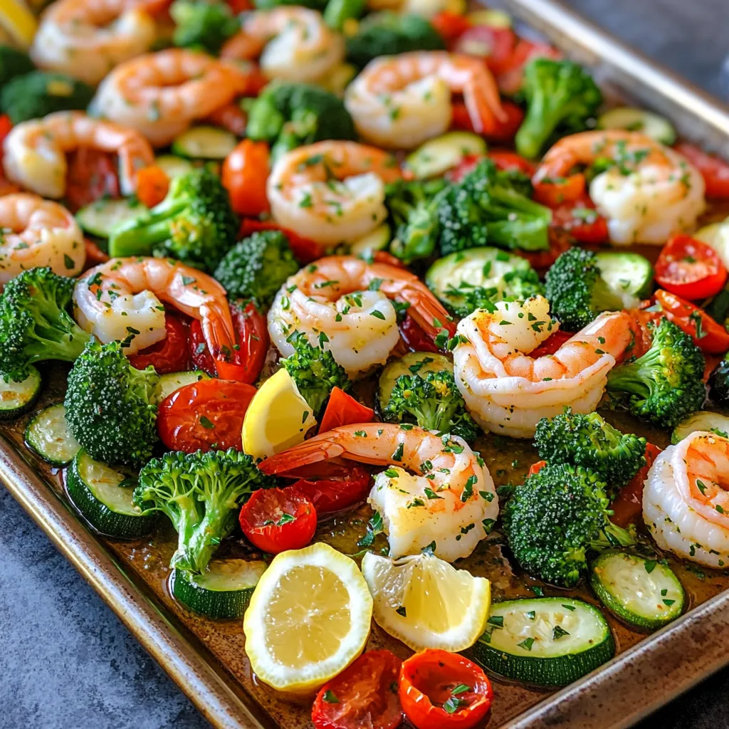 For a fun look, serve the dish right on the baking sheet. It gives a rustic vibe. You can also use a big platter and arrange the shrimp and veggies neatly. Add lemon wedges around for color and zest.