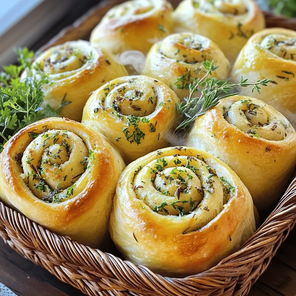 Now, slice the log into 1-inch thick rounds. Place them in a greased baking dish, cut side up. Cover the rolls with a kitchen towel. Let them rise for another 30 minutes. Preheat your oven to 375°F (190°C). Bake the rolls for 25-30 minutes until they are golden brown on top. When ready, allow the bread to cool slightly before serving. Pull apart the rolls to reveal the delicious swirl of garlic and herbs inside. Enjoy every bite!