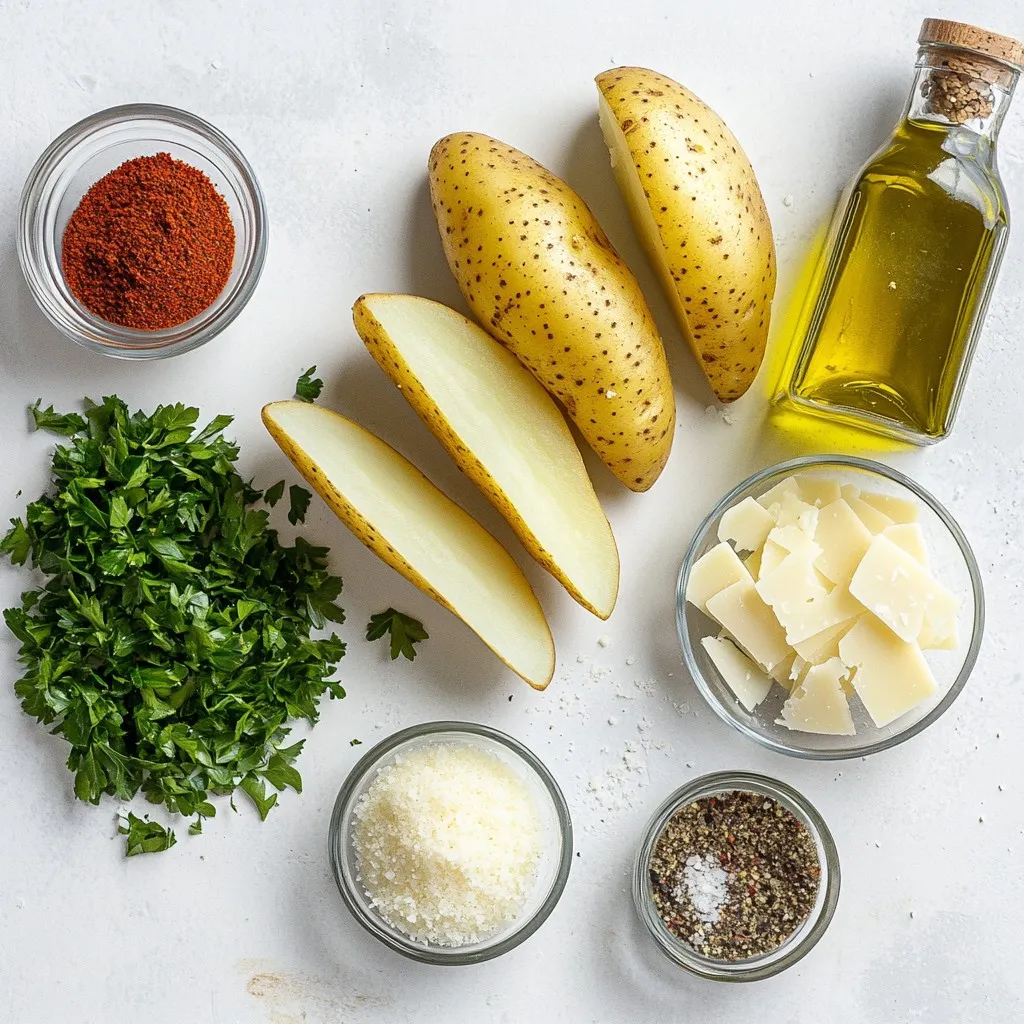 To make delicious Garlic Parmesan Air Fryer Potato Wedges, you need just a few simple ingredients. Here’s what you will need: