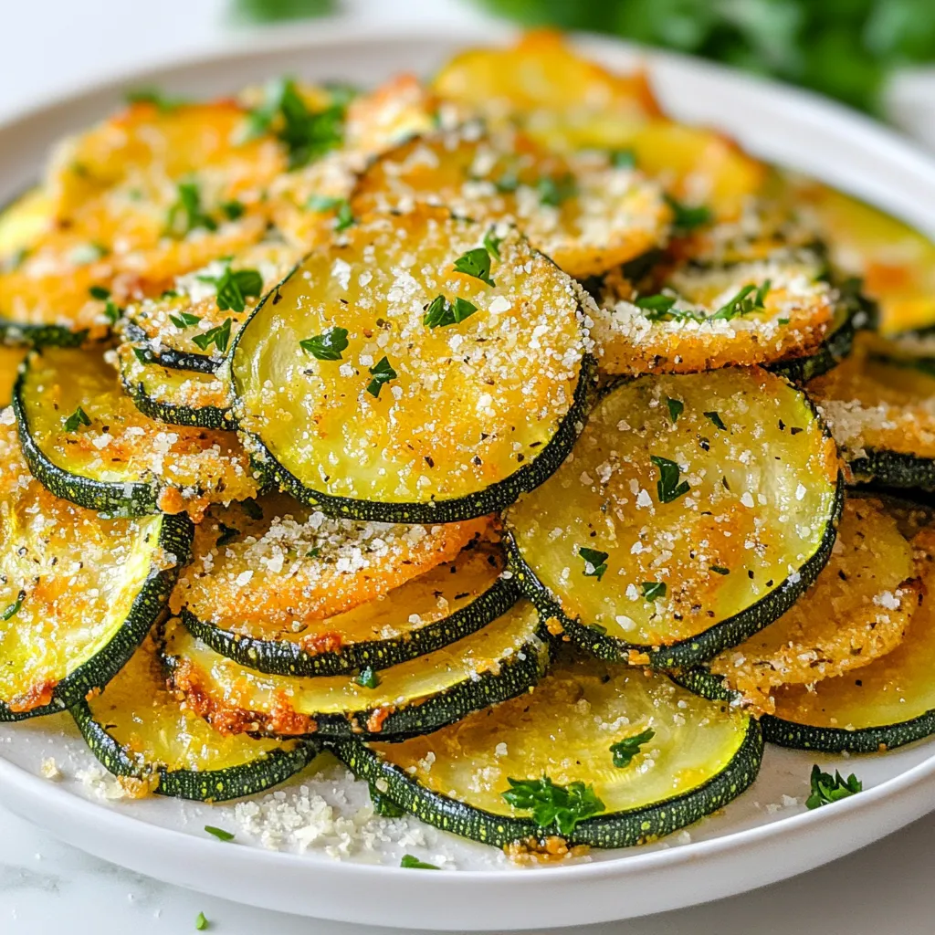 Crispy and flavorful zucchini chips seasoned with garlic and Parmesan.