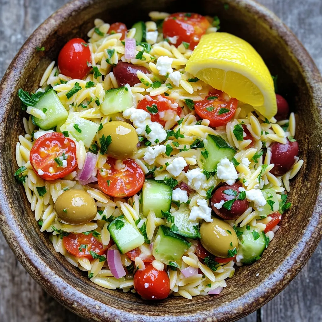 If you have dietary needs, you can make swaps. For a gluten-free version, try quinoa or rice instead of orzo. If you need a vegan option, skip the feta and use avocado for creaminess. You can also use olives of your choice. For low-sodium diets, use low-sodium vegetable broth. These changes keep the salad delicious and enjoyable for everyone.