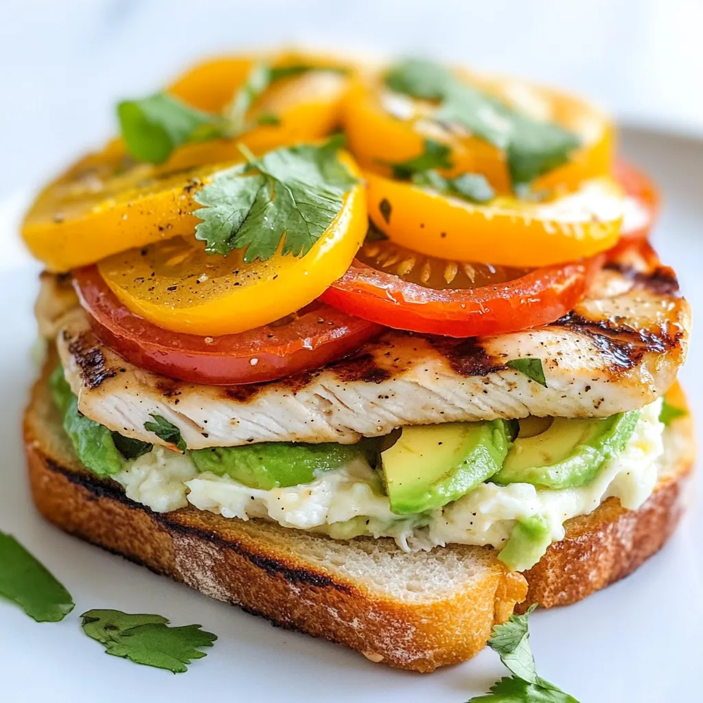 - 2 boneless, skinless chicken breasts - 1 ripe avocado, mashed - 1 tablespoon lime juice - 1 teaspoon garlic powder - Salt and pepper to taste - 4 slices of whole grain bread - 4 slices of mozzarella cheese - ¼ cup fresh cilantro, chopped - 1 tablespoon olive oil - 1 small tomato, sliced - Optional: hot sauce for drizzling You can add a few things to boost the taste. Consider using: - Sliced jalapeños for heat - Red onion rings for crunch - Spinach leaves for freshness - A sprinkle of cumin for depth To make your dish shine, pick the best ingredients. Here are some tips: - Choose ripe avocados that yield slightly when squeezed. - Look for chicken breasts that are pink and firm. - Select whole grain bread that feels fresh and soft. - Fresh cilantro should smell bright and green. - Pick tomatoes that are red and feel heavy for their size. Using fresh ingredients makes your Grilled Chicken Avocado Melt taste great! {{ingredient_image_1}} First, I season the chicken breasts. I sprinkle garlic powder, salt, and pepper on both sides. This adds great flavor. Next, I heat olive oil in a grill pan over medium-high heat. Once hot, I place the chicken in the pan. I grill the chicken for about 6-7 minutes on each side. I know it’s done when the juices run clear. After grilling, I let it rest for a few minutes. This helps keep it juicy. Then, I slice the chicken into strips. While the chicken rests, I prepare the avocado mix. I take a ripe avocado and mash it in a bowl. Then, I add lime juice and chopped cilantro. A pinch of salt brings out the flavor. I mix everything until smooth. This creamy mix will go on the sandwich later. Now it’s time to build the sandwiches. I start with two slices of whole grain bread. I spread a generous amount of the avocado mix on each slice. On top, I layer the sliced grilled chicken and a couple of tomato slices. Then, I add a slice of mozzarella cheese. I place the other bread slices on top to complete the sandwich. Next, I move the sandwiches to a baking sheet. I preheat the oven to broil. I broil the sandwiches for about 2-3 minutes. I keep a close eye to prevent burning. Once the cheese is melted and bubbly, I remove them from the oven. I slice each sandwich in half, and if I want, I drizzle some hot sauce on top. To get juicy grilled chicken, start with good seasoning. Use garlic powder, salt, and pepper. Coat both sides of the chicken breasts well. Heat your grill pan to medium-high. Add olive oil to keep it from sticking. Grill each side for 6-7 minutes. Cook until the chicken is clear of pink and juices run clear. Let it rest after grilling. This step keeps it moist and tender. You can change up the avocado mix in fun ways. Add diced tomatoes for more flavor. Try a pinch of cumin for a warm spice. You could mix in some chopped red onion for a nice crunch. If you like it spicy, toss in a small diced jalapeño. Each option brings a new twist to your melt. Choosing the right bread makes a big difference. Whole grain is healthy and offers a nutty taste. Sourdough gives a nice chewy texture. You might also enjoy ciabatta for its airy inside. Look for bread that holds up well when grilled. This will help keep your sandwich from falling apart. Pro Tips Marinate for Extra Flavor: If you have time, marinating the chicken in the lime juice, garlic powder, and a bit of olive oil for 30 minutes can enhance the flavor. Use Fresh Ingredients: Always opt for ripe avocados and fresh cilantro for the best taste in your avocado mixture. Watch the Broiler: When broiling, keep a close eye on the sandwiches to ensure the cheese melts perfectly without burning. Customize Your Toppings: Feel free to add other toppings like jalapeños or red onions for an extra kick of flavor! {{image_2}} You can swap some ingredients for healthier choices. Use grilled turkey instead of chicken. This cuts fat but still gives great taste. Choose whole grain or sprouted bread for more fiber. You can also try avocado oil in place of olive oil. This oil has healthy fats and a light flavor. If you want a vegetarian option, you can replace chicken with grilled veggies. Use zucchini, bell peppers, or mushrooms for a tasty twist. You can also use black beans or chickpeas for protein. For the cheese, try using a dairy-free version. It melts well and adds a nice creaminess. To spice things up, add jalapeños or red pepper flakes. You can mix these into the avocado for a kick. If you like sauces, drizzle sriracha or your favorite hot sauce on top. This adds flavor and heat, making your meal exciting. To store leftovers, let the sandwiches cool first. Wrap each sandwich in plastic wrap or foil. Place them in an airtight container. You can keep them in the fridge for up to three days. Make sure to eat them before they spoil for the best taste. When you want to reheat your sandwich, use an oven or toaster oven. Preheat your oven to 350°F (175°C). Place the sandwich on a baking sheet. Heat it for about 10-15 minutes until warm. This method keeps the bread crispy. You can also use a microwave, but the bread may get soggy. You can freeze these sandwiches for meal prep. Wrap each sandwich tightly in plastic wrap. Then, place them in a freezer bag. They can last in the freezer for up to three months. To enjoy, thaw them overnight in the fridge. Reheat as mentioned above for the best results. You can make this recipe gluten-free by using gluten-free bread. Many brands offer tasty options. Just check the ingredients to be sure. You can also use lettuce wraps instead of bread. This keeps the dish light and fresh. Yes, you can use different types of cheese. Cheddar or pepper jack can add a nice twist. If you want a stronger flavor, try blue cheese. Just remember to melt it well for a creamy texture. You can serve these melts with a simple salad or some sweet potato fries. They pair well with fresh fruit too. If you like, add a dipping sauce for extra flavor. A spicy salsa or ranch dressing would be great choices. I